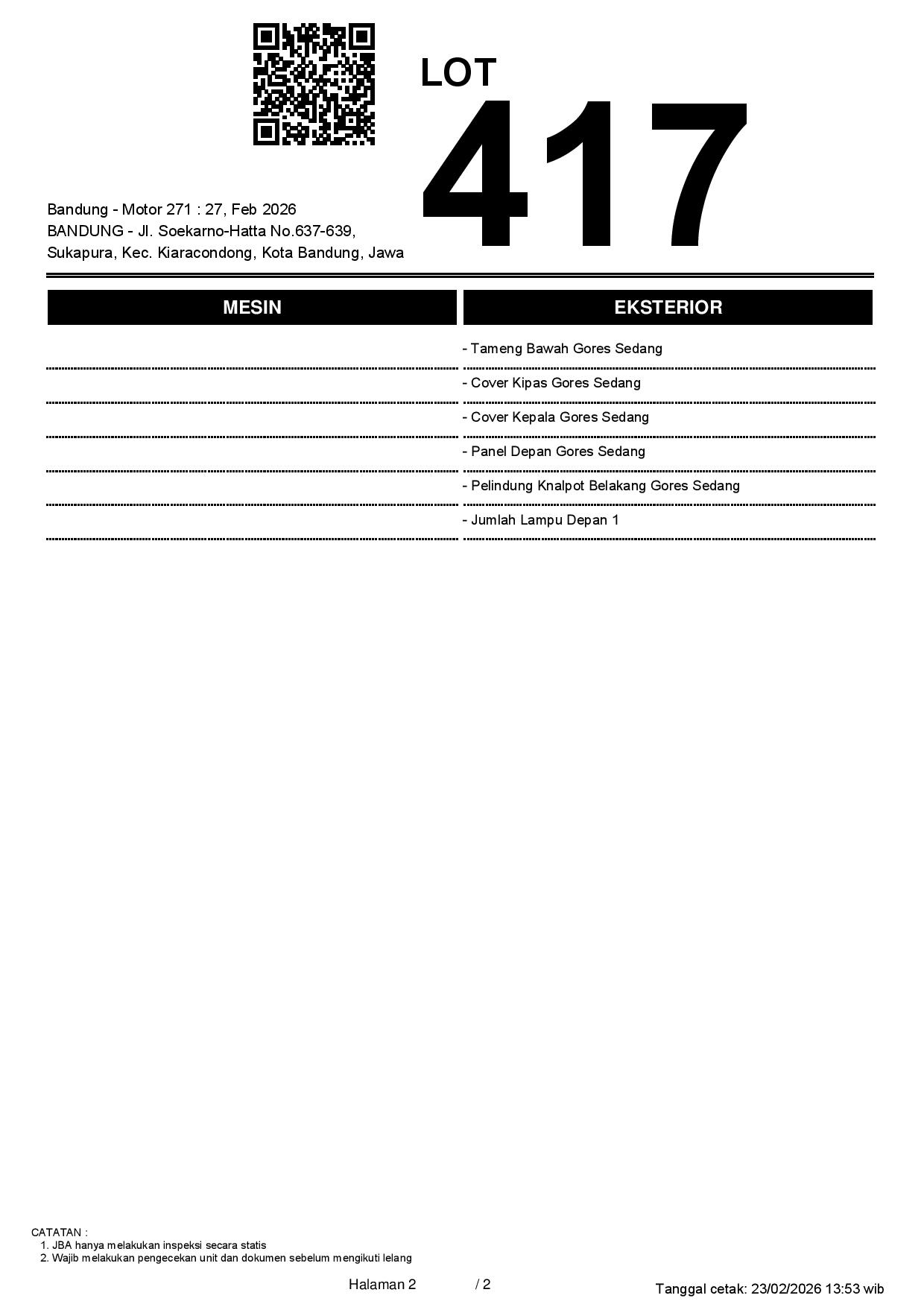1. Peserta lelang wajib cek unit & dokumen