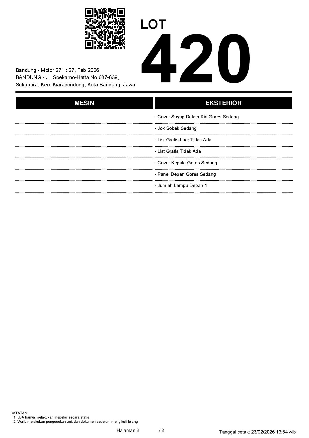 1. Peserta lelang wajib cek unit & dokumen