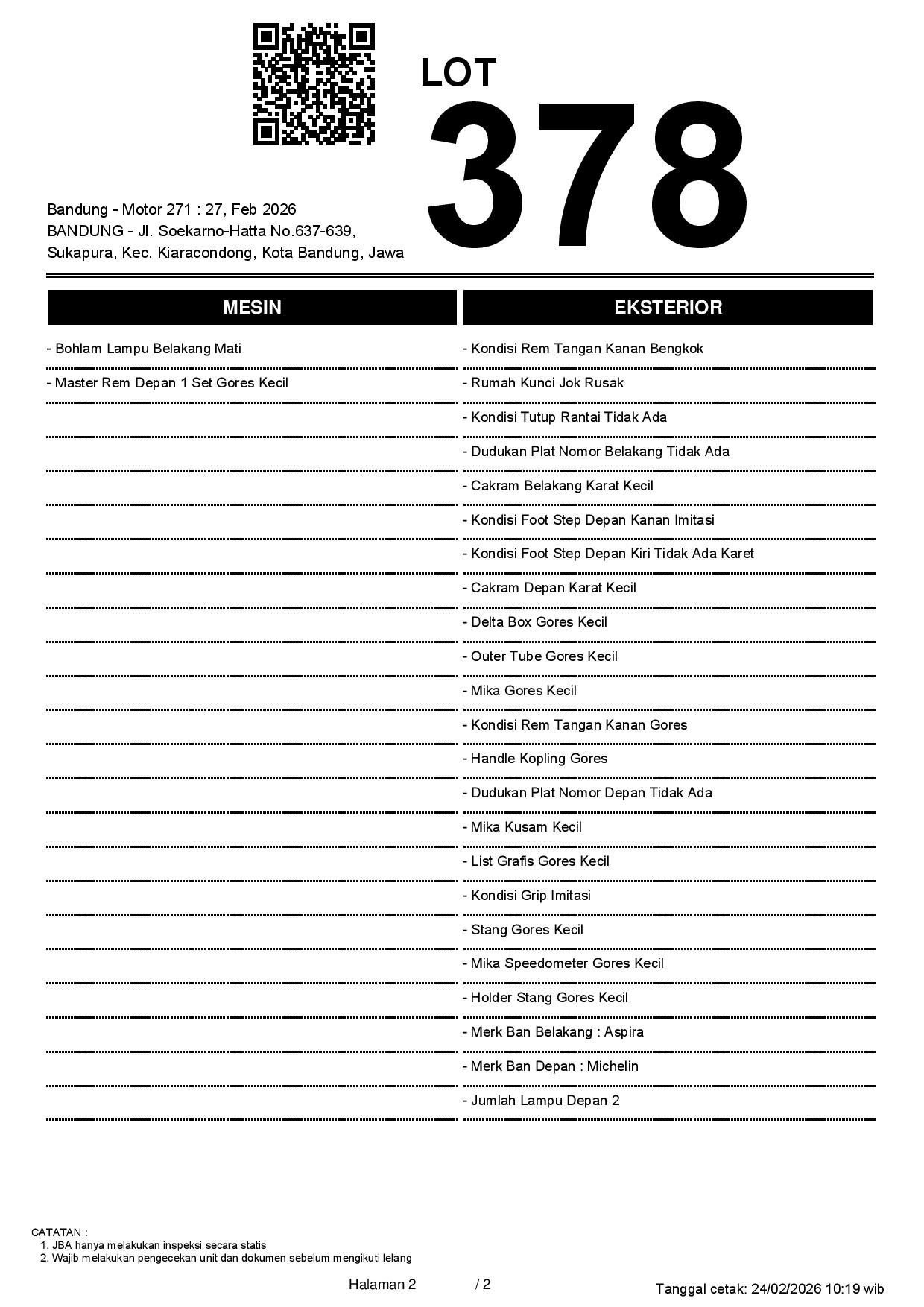 2. Peserta lelang wajib cek unit & dokumen