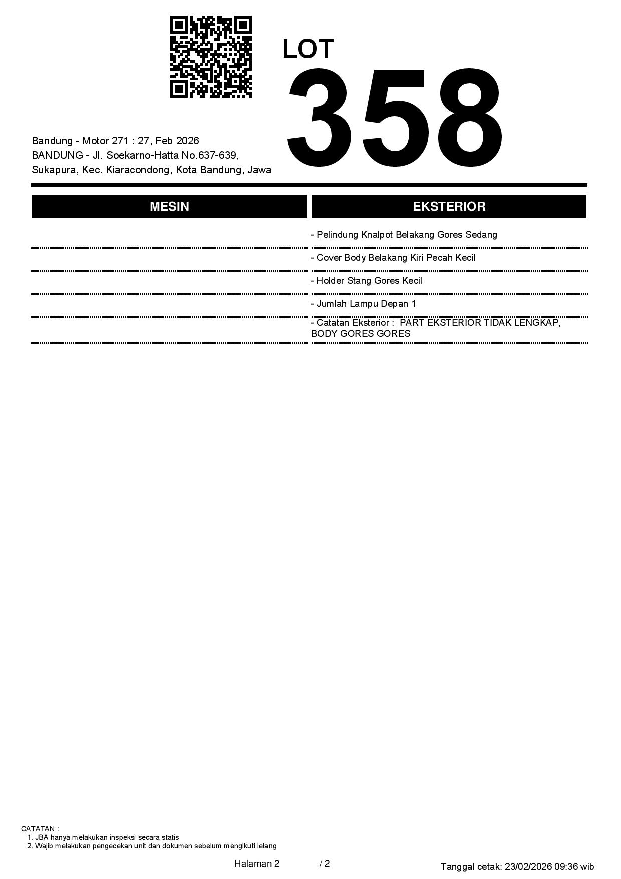 2. Peserta lelang wajib cek unit & dokumen