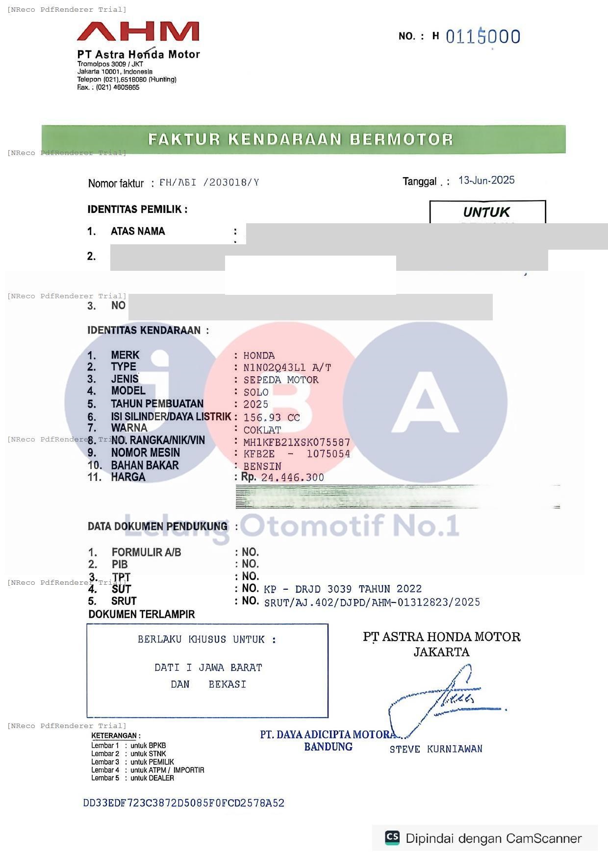 Nomor Rangka