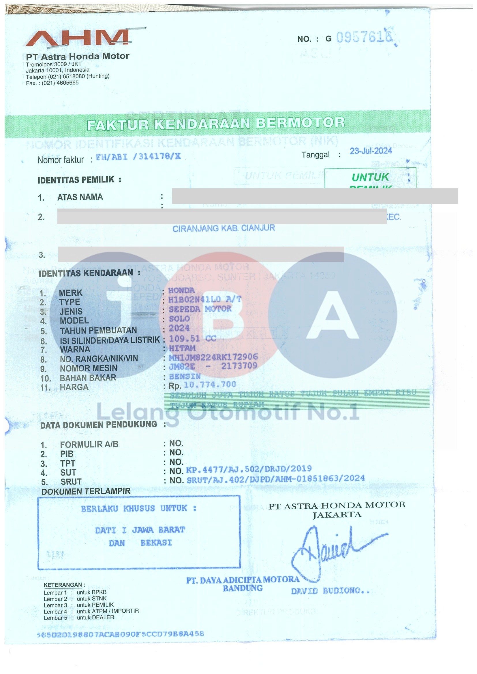 Nomor Rangka