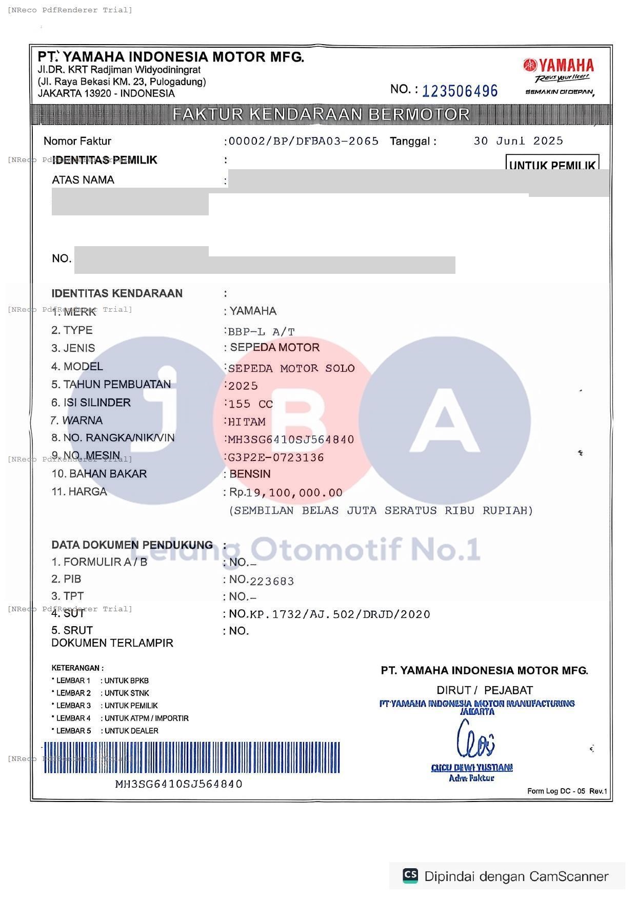 Nomor Rangka
