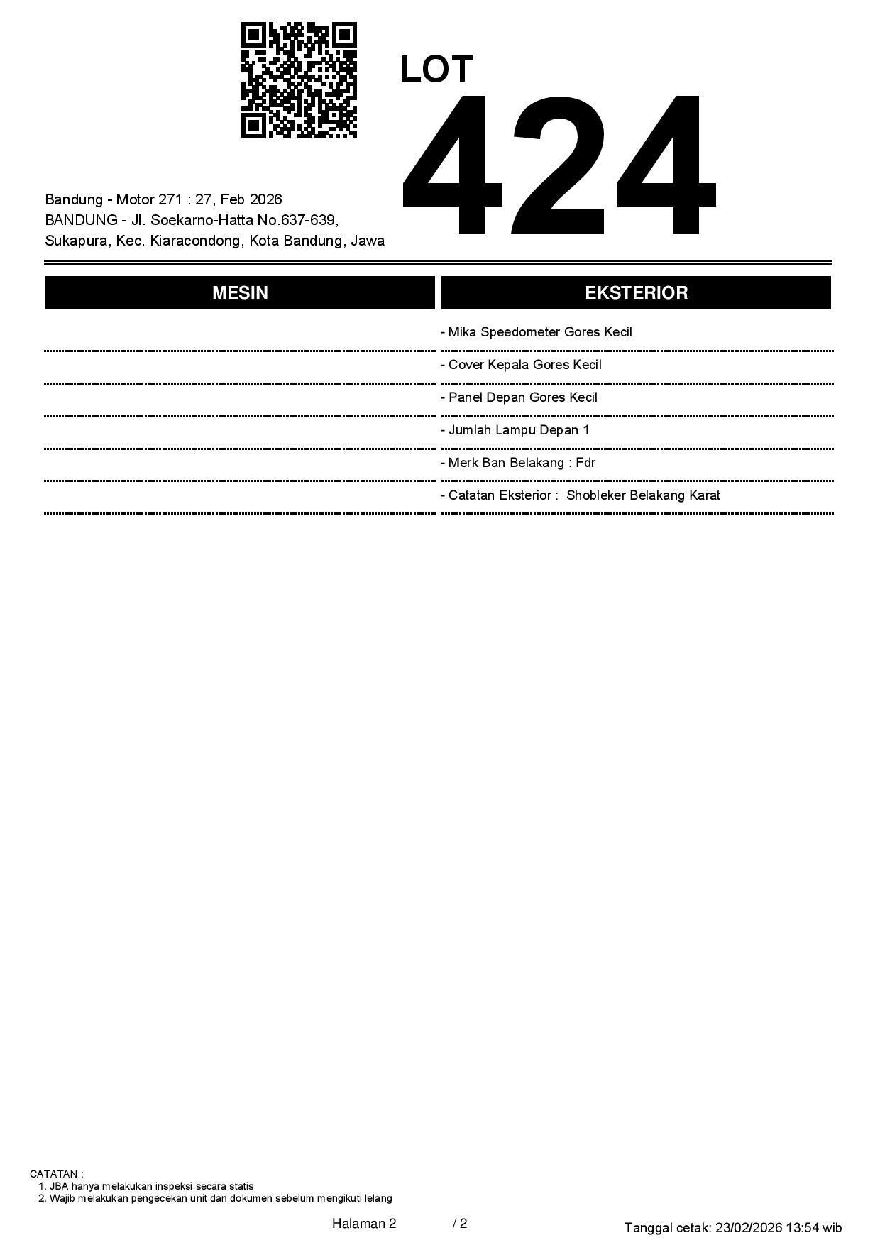 1. Peserta lelang wajib cek unit & dokumen