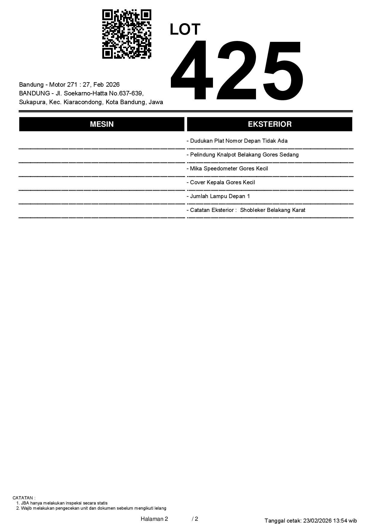 Tanggal Lelang: 27/02/2026 13.5:00 | WIB