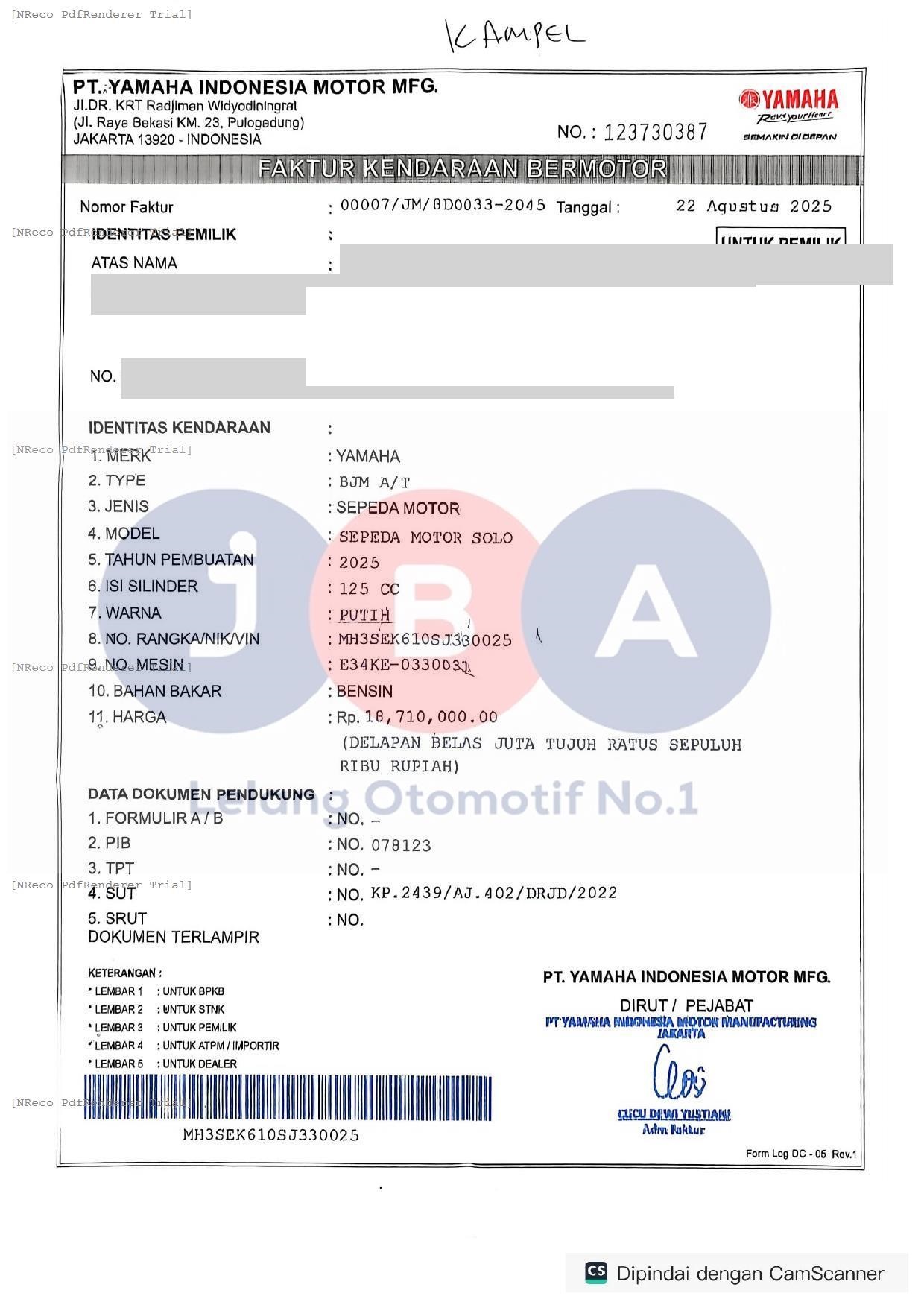 Nomor Rangka