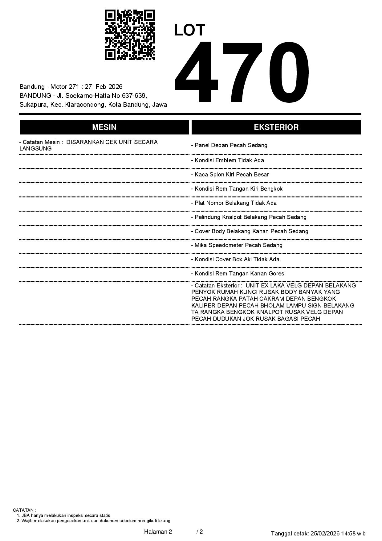 2. Peserta lelang wajib cek unit & dokumen