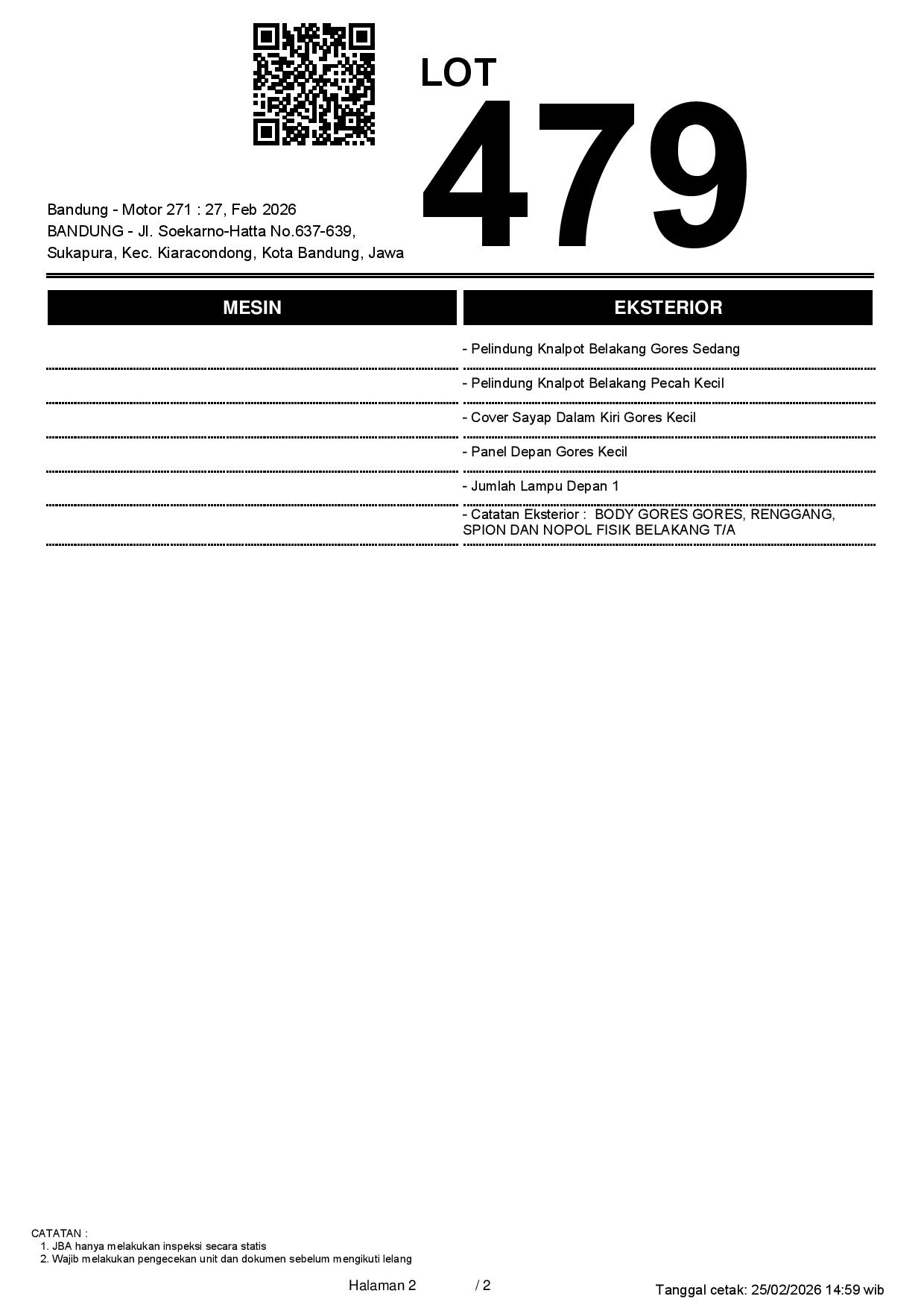 2. Peserta lelang wajib cek unit & dokumen