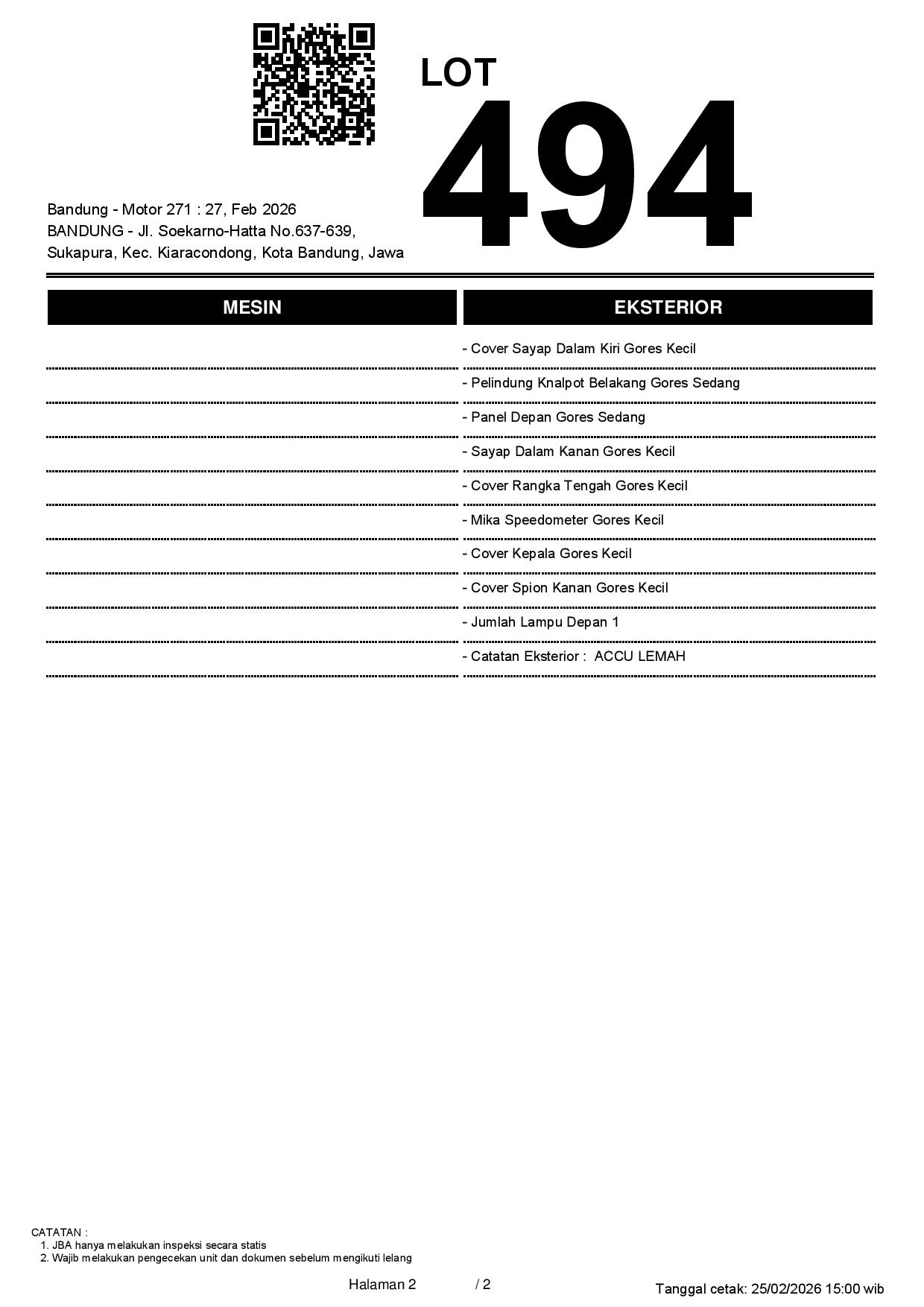 Tanggal Lelang: 27/02/2026 13.5:00 | WIB