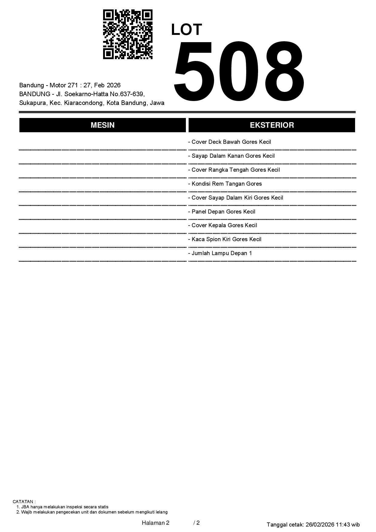 2. Peserta lelang wajib cek unit & dokumen