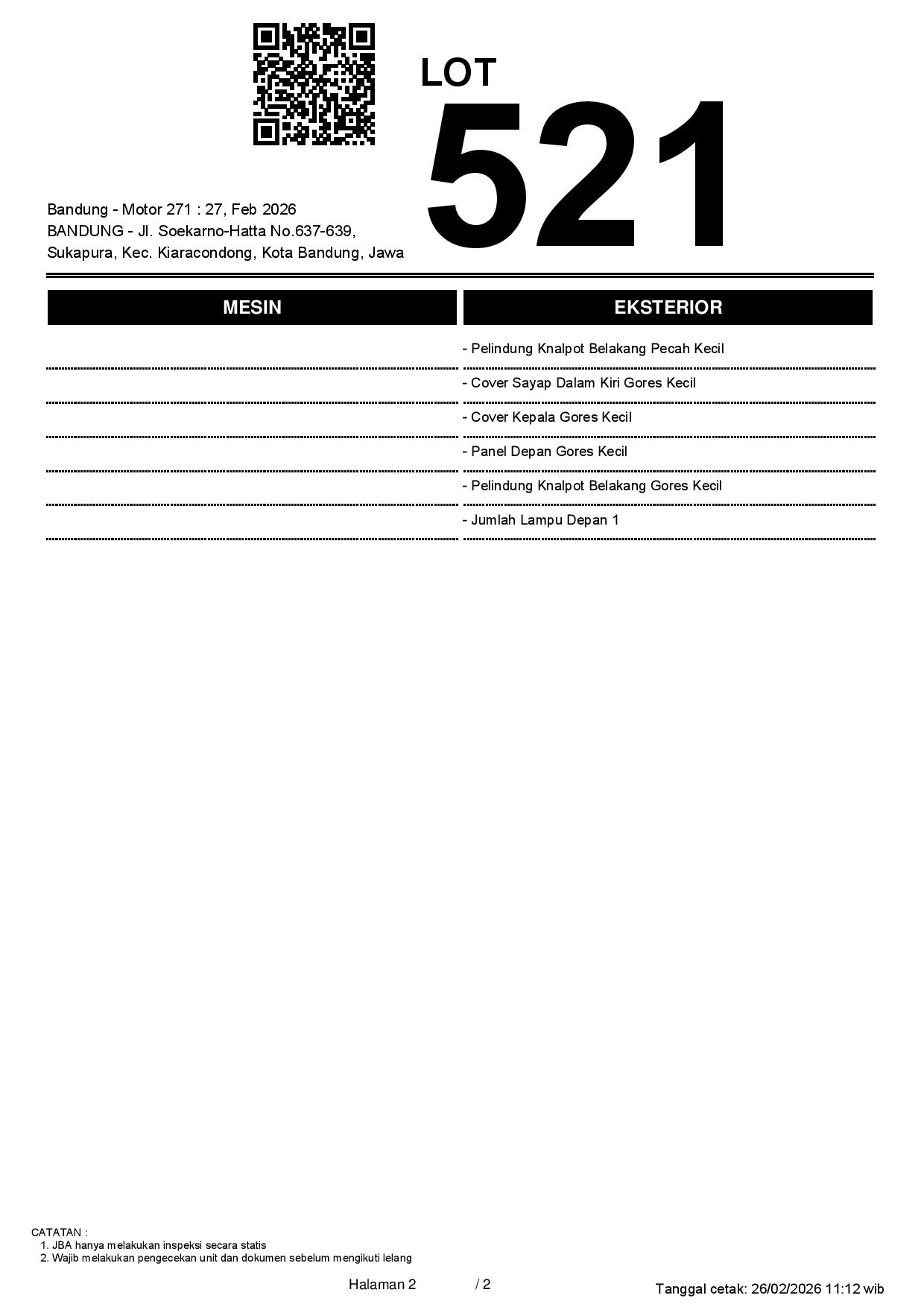 2. Peserta lelang wajib cek unit & dokumen