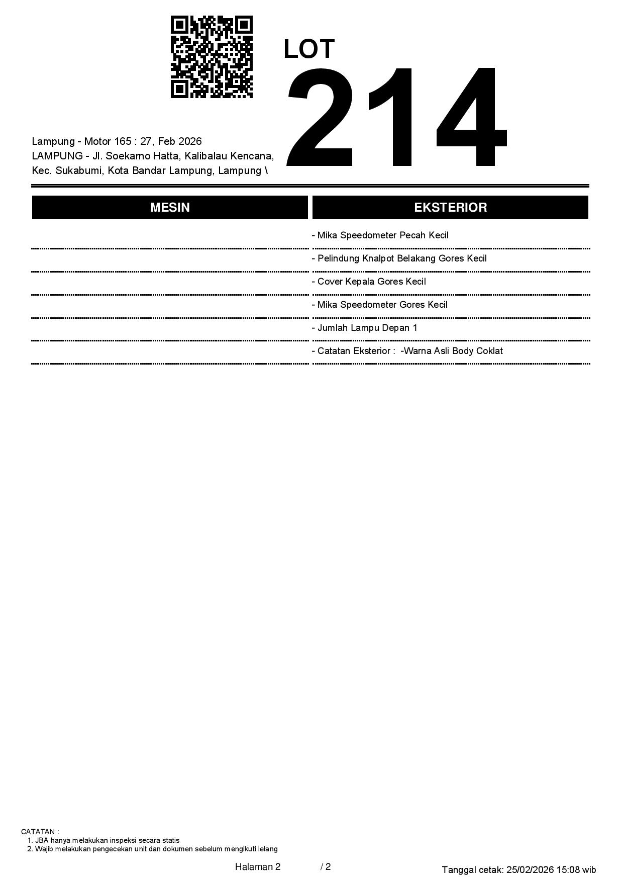 Tanggal Lelang: 27/02/2026 13.5:00 | WIB