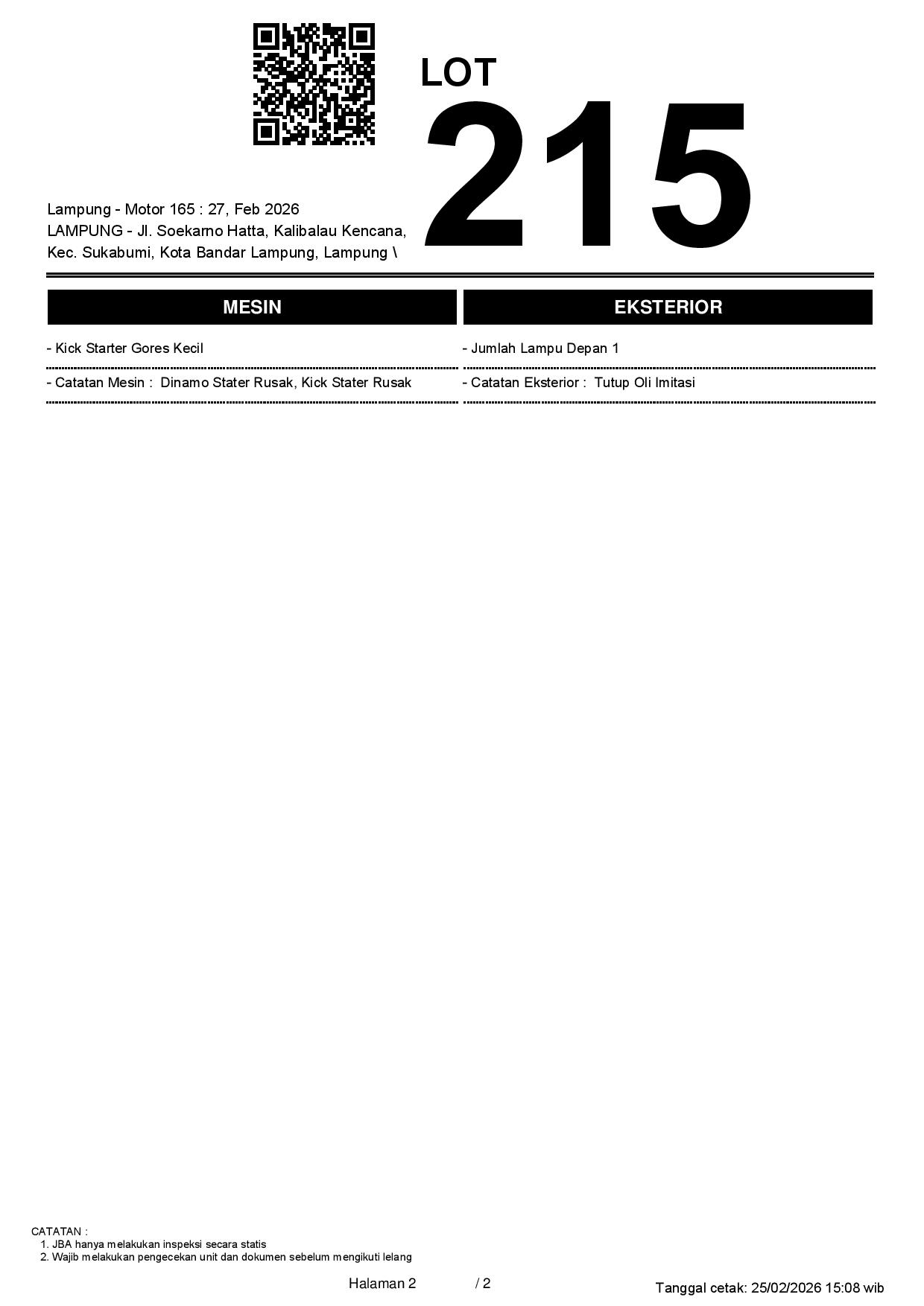 Tanggal Lelang: 27/02/2026 13.5:00 | WIB