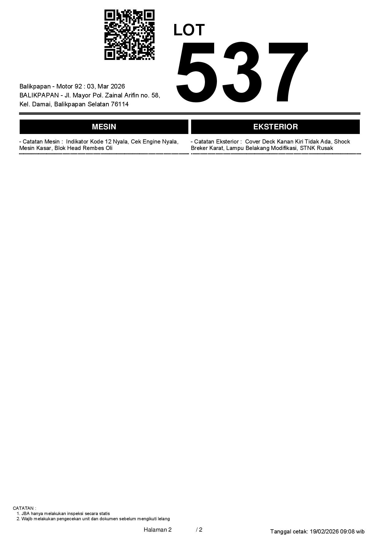 2. Peserta lelang wajib cek unit & dokumen