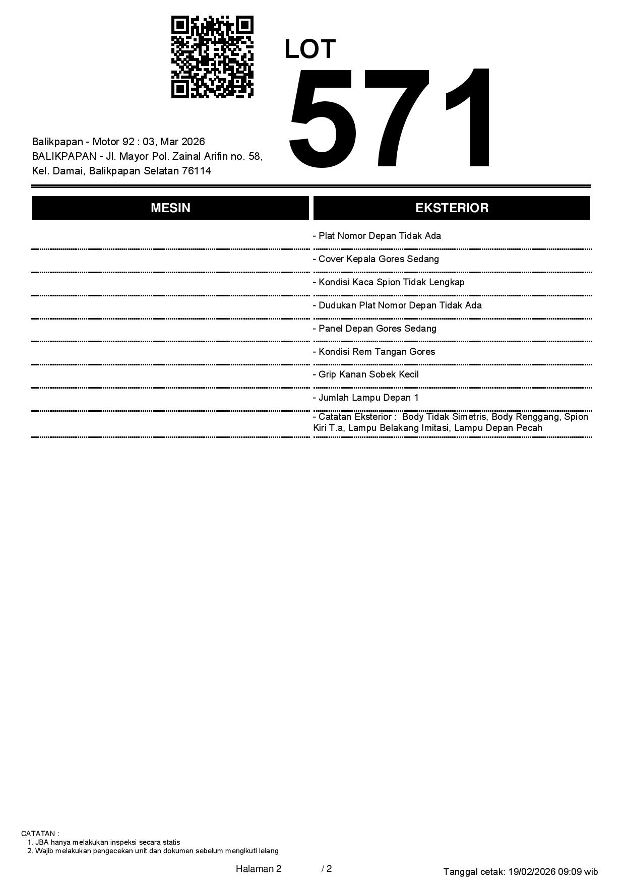 2. Peserta lelang wajib cek unit & dokumen