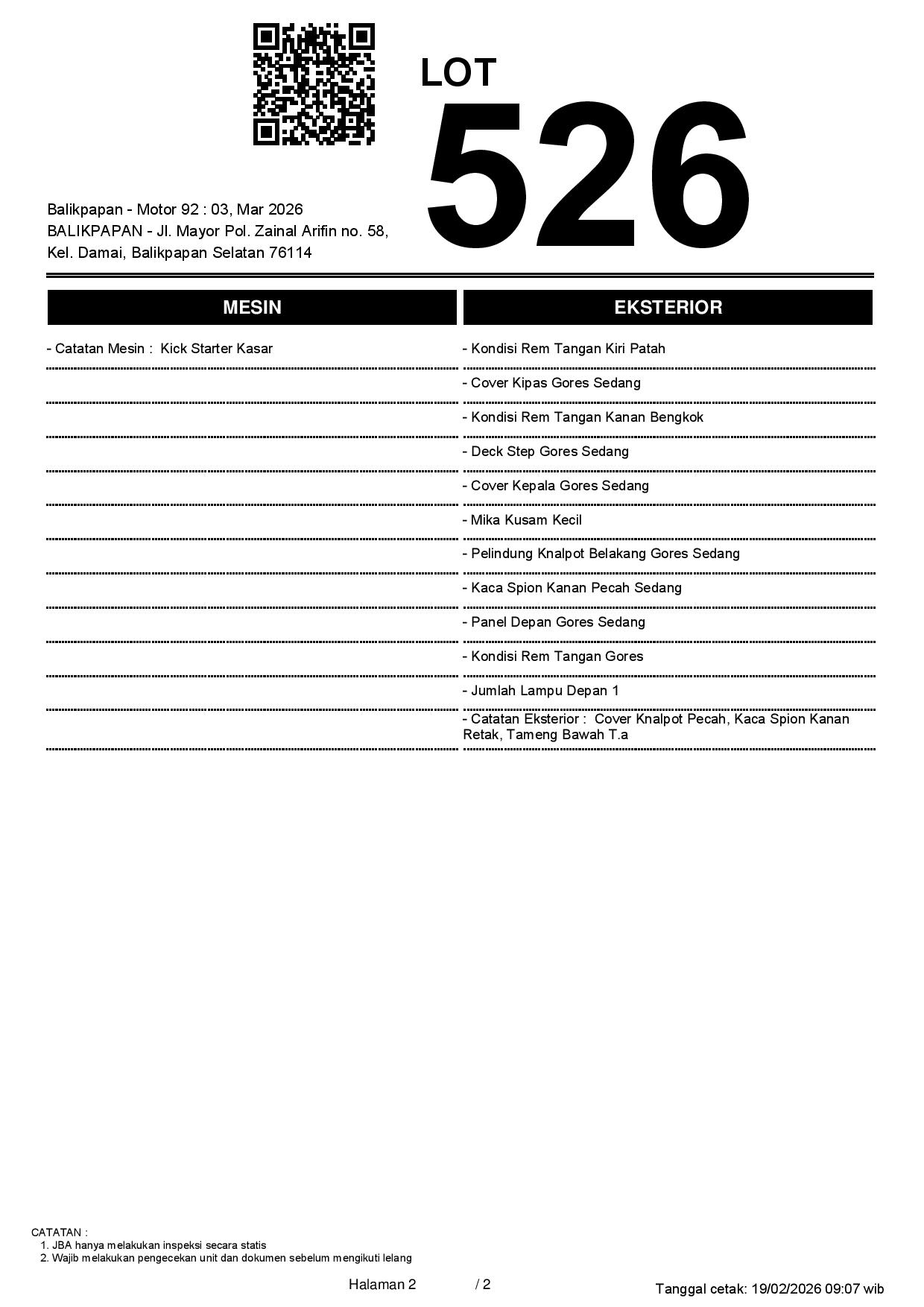 2. Peserta lelang wajib cek unit & dokumen