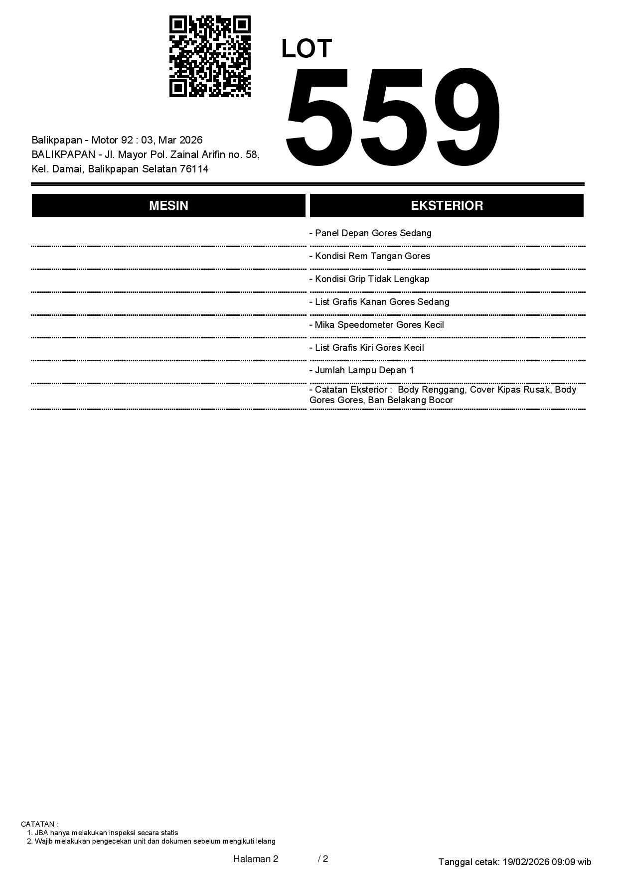2. Peserta lelang wajib cek unit & dokumen