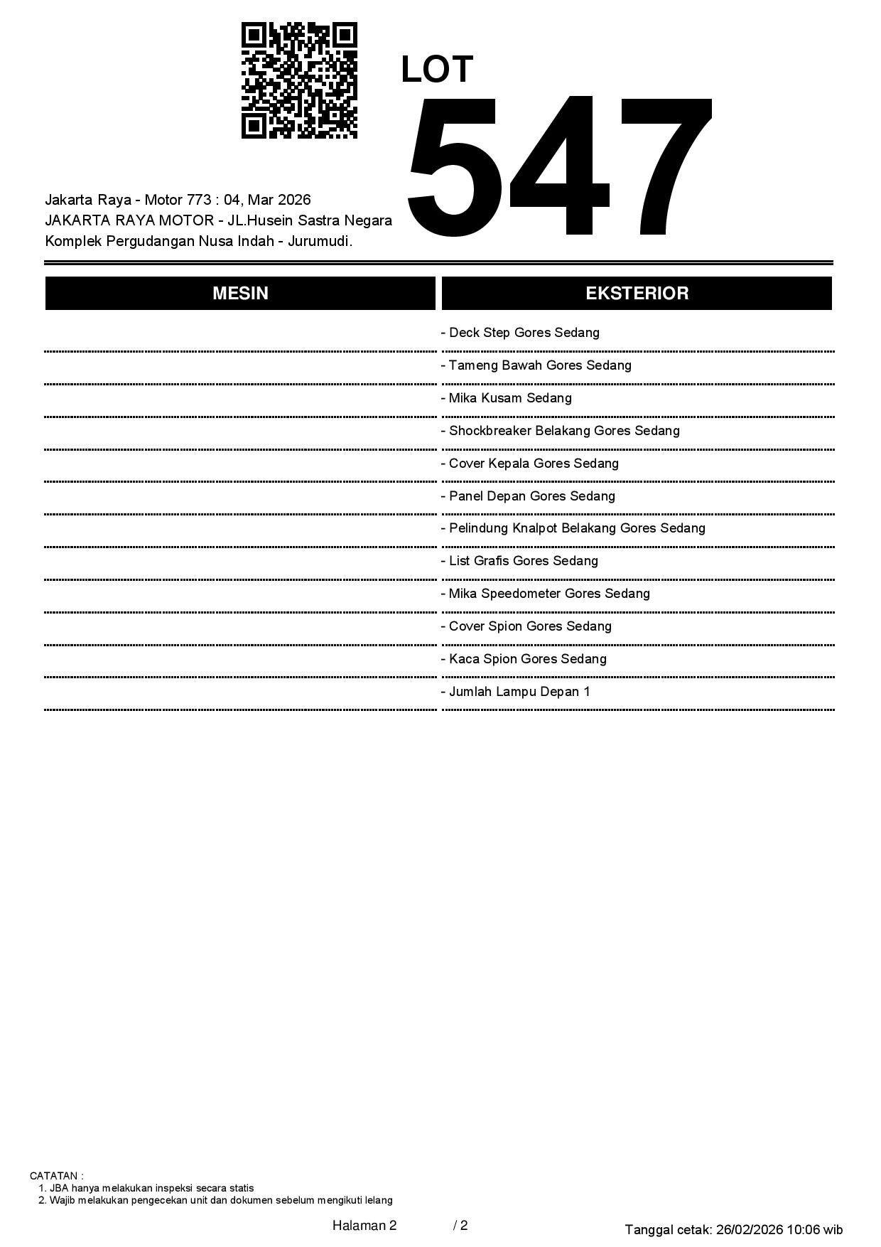 2. Peserta lelang wajib cek unit & dokumen