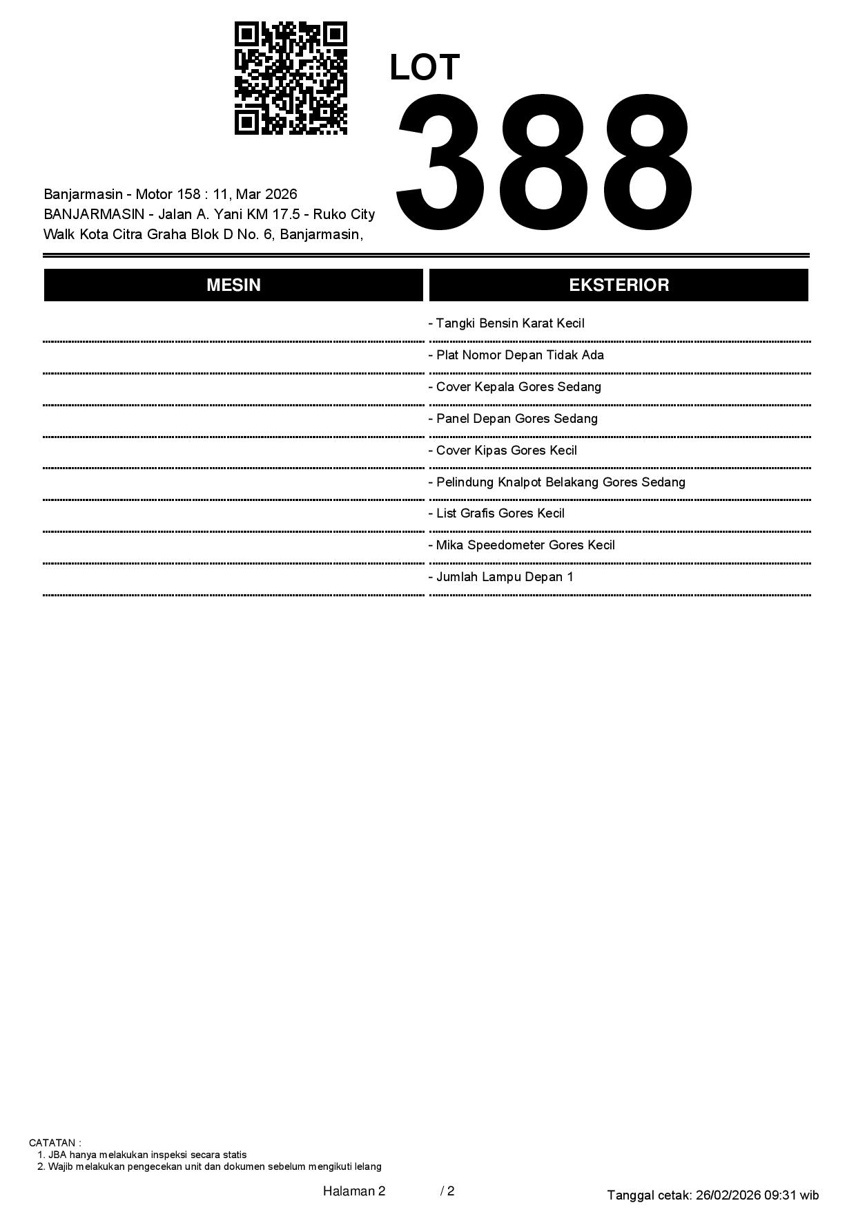 2. Peserta lelang wajib cek unit & dokumen
