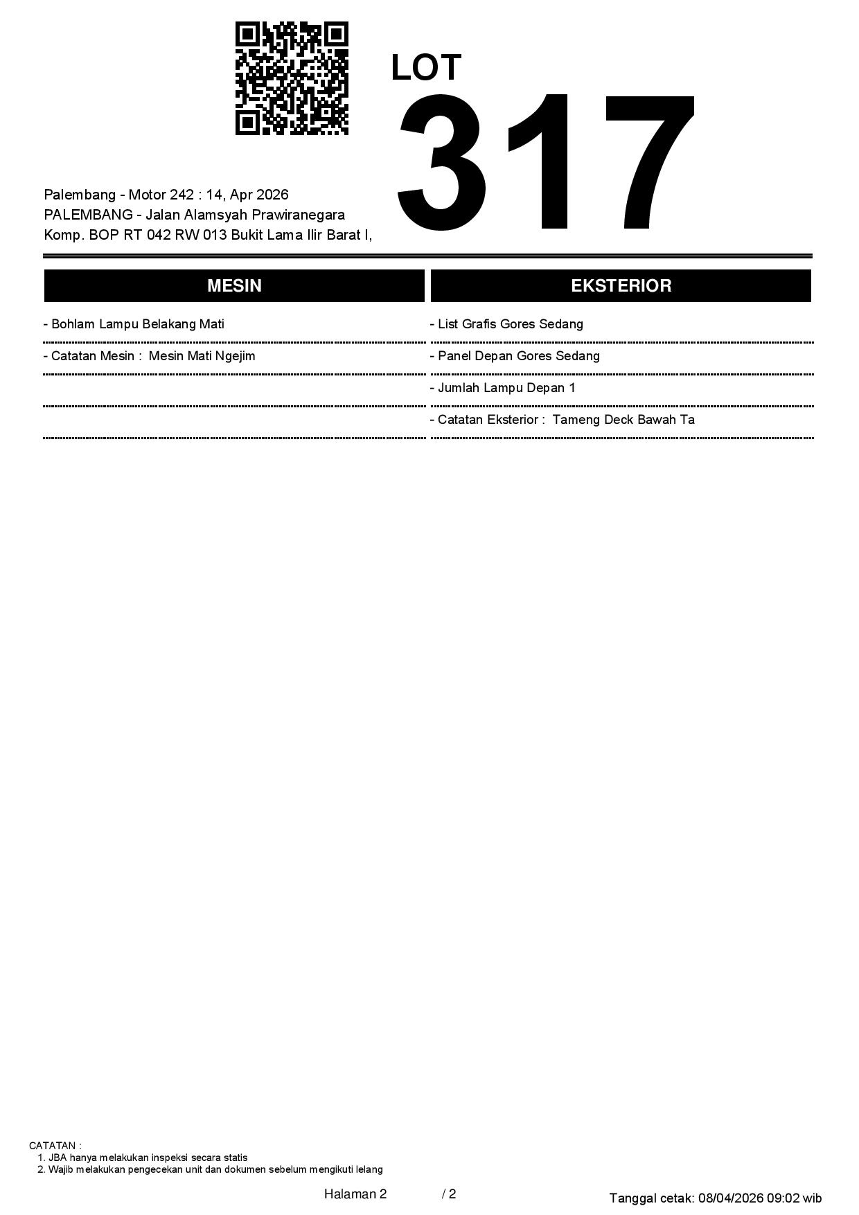 1. Peserta lelang wajib cek unit & dokumen