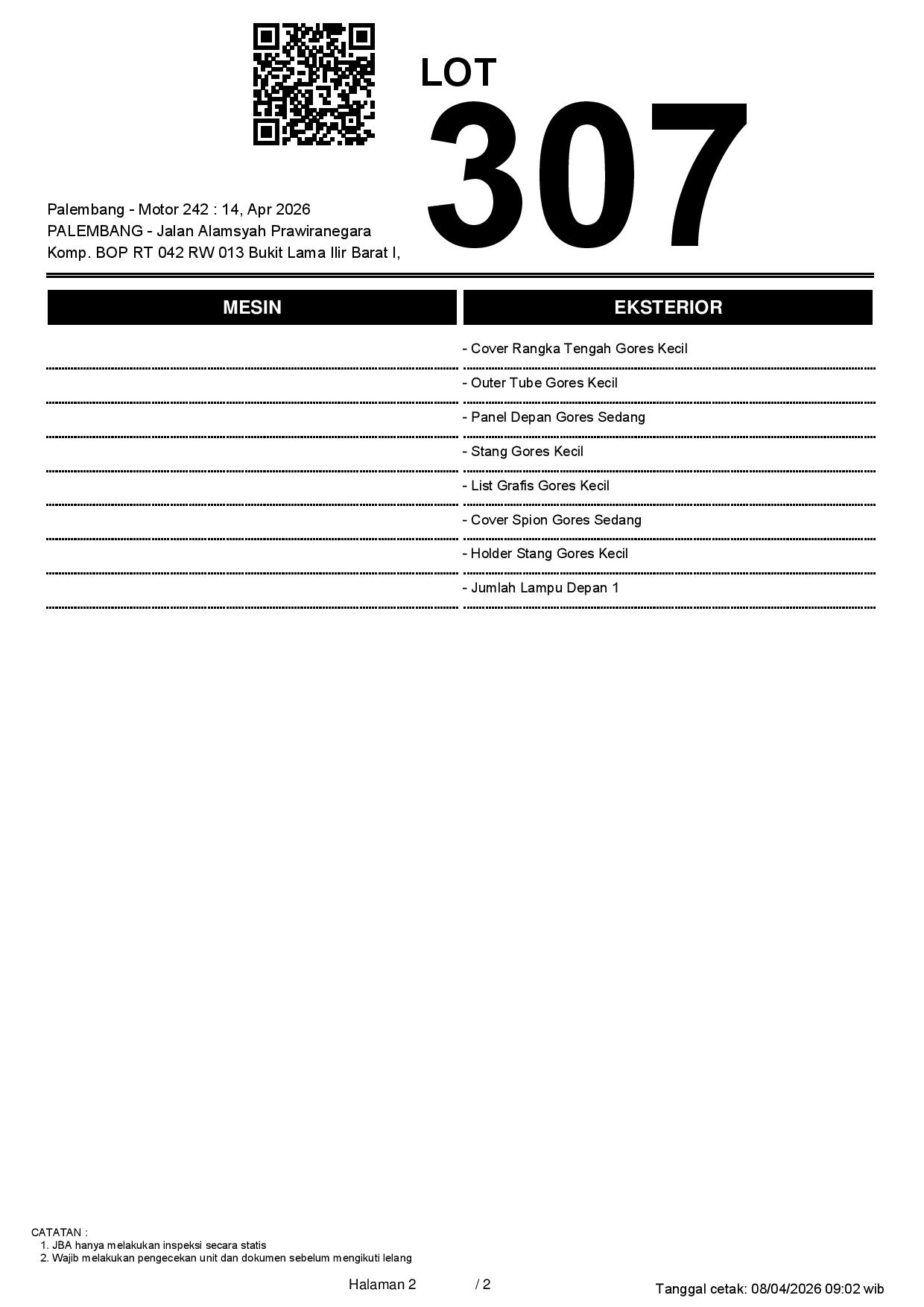 1. Peserta lelang wajib cek unit & dokumen