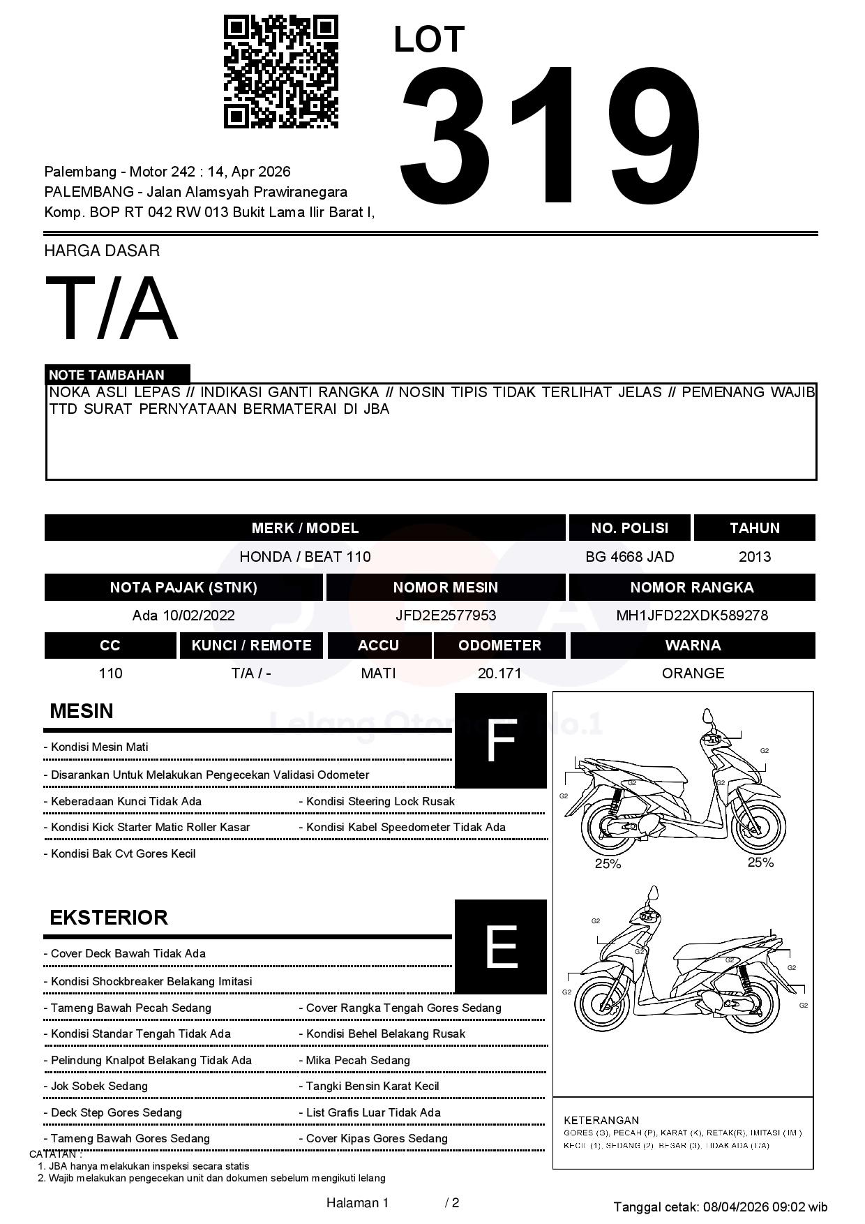 NOKA ASLI LEPAS // INDIKASI GANTI RANGKA // NOSIN TIPIS TIDAK TERLIHAT JELAS // PEMENANG WAJIB TTD SURAT PERNYATAAN BERMATERAI DI JBA