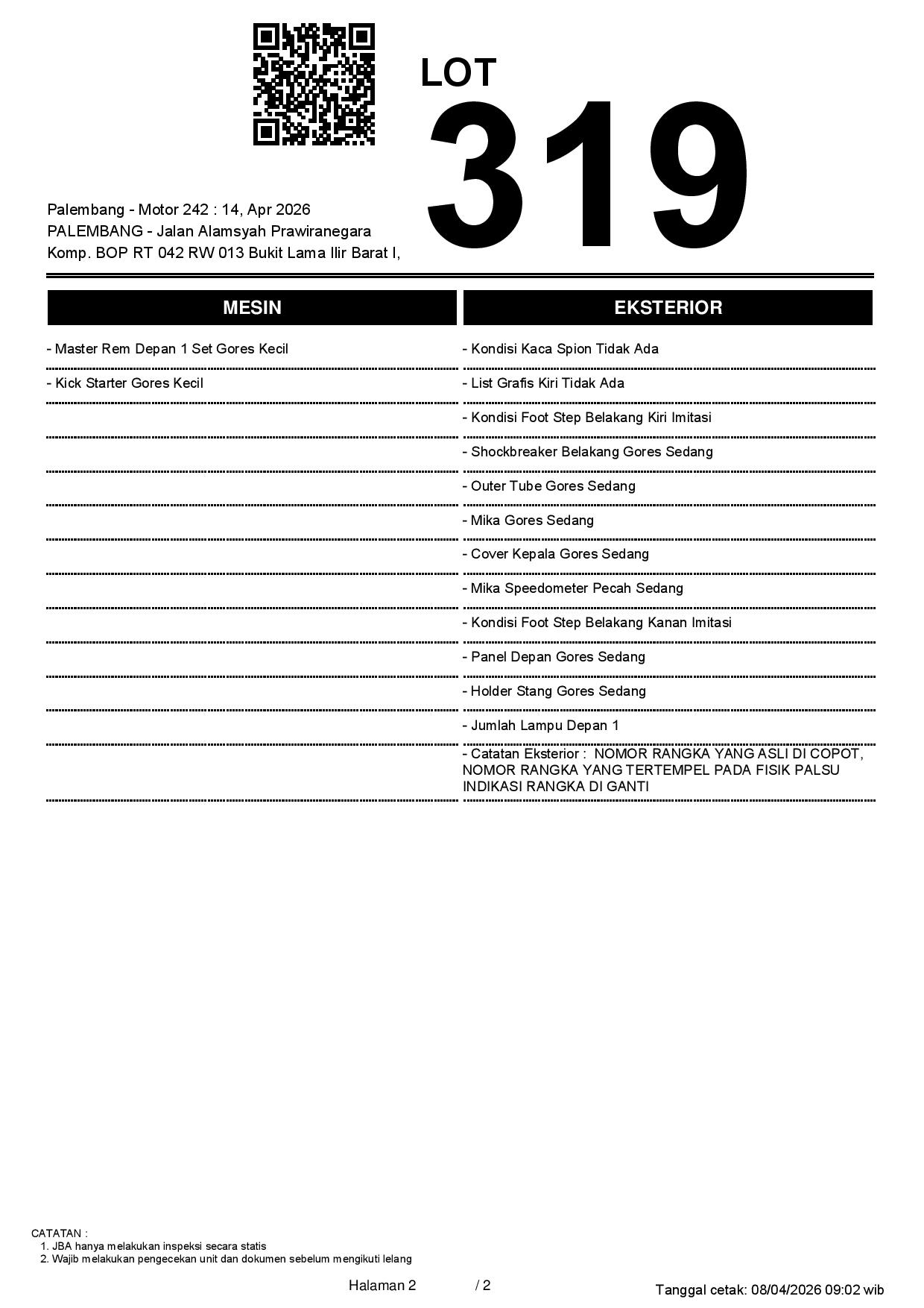 1. Peserta lelang wajib cek unit & dokumen