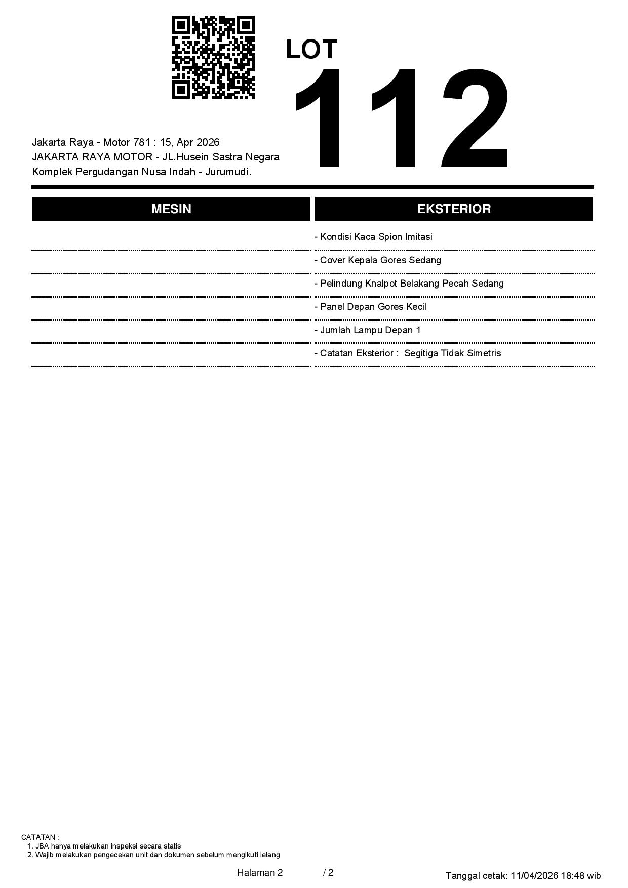 2. Peserta lelang wajib cek unit & dokumen