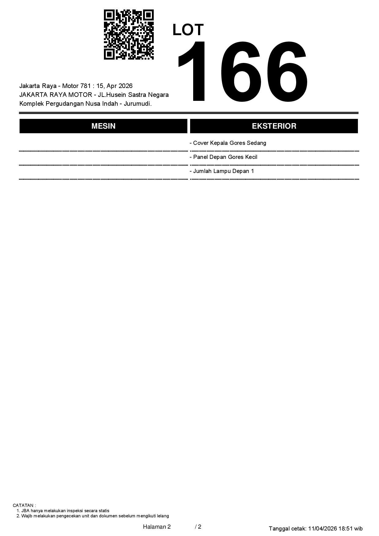 2. Peserta lelang wajib cek unit & dokumen