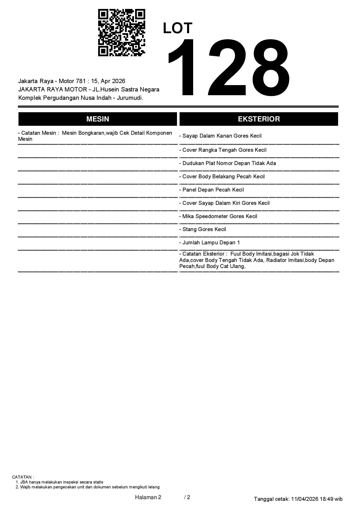 2. Peserta lelang wajib cek unit & dokumen