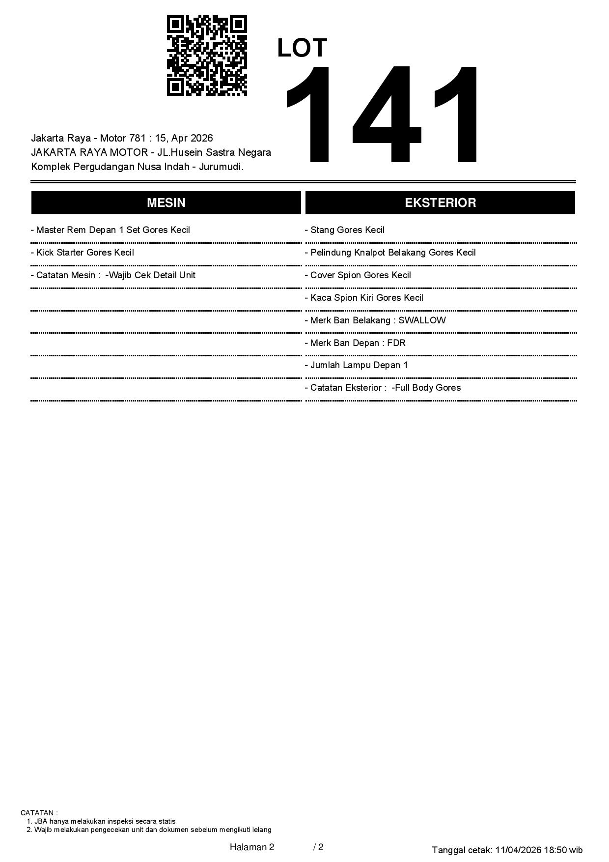 2. Peserta lelang wajib cek unit & dokumen