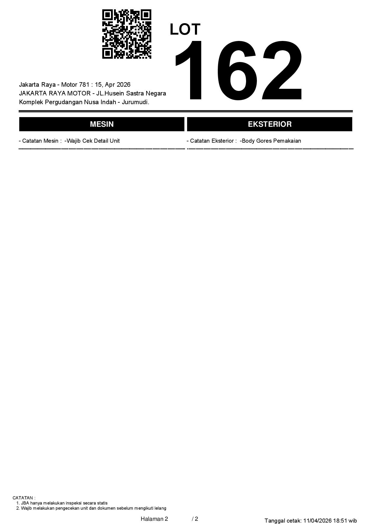 2. Peserta lelang wajib cek unit & dokumen