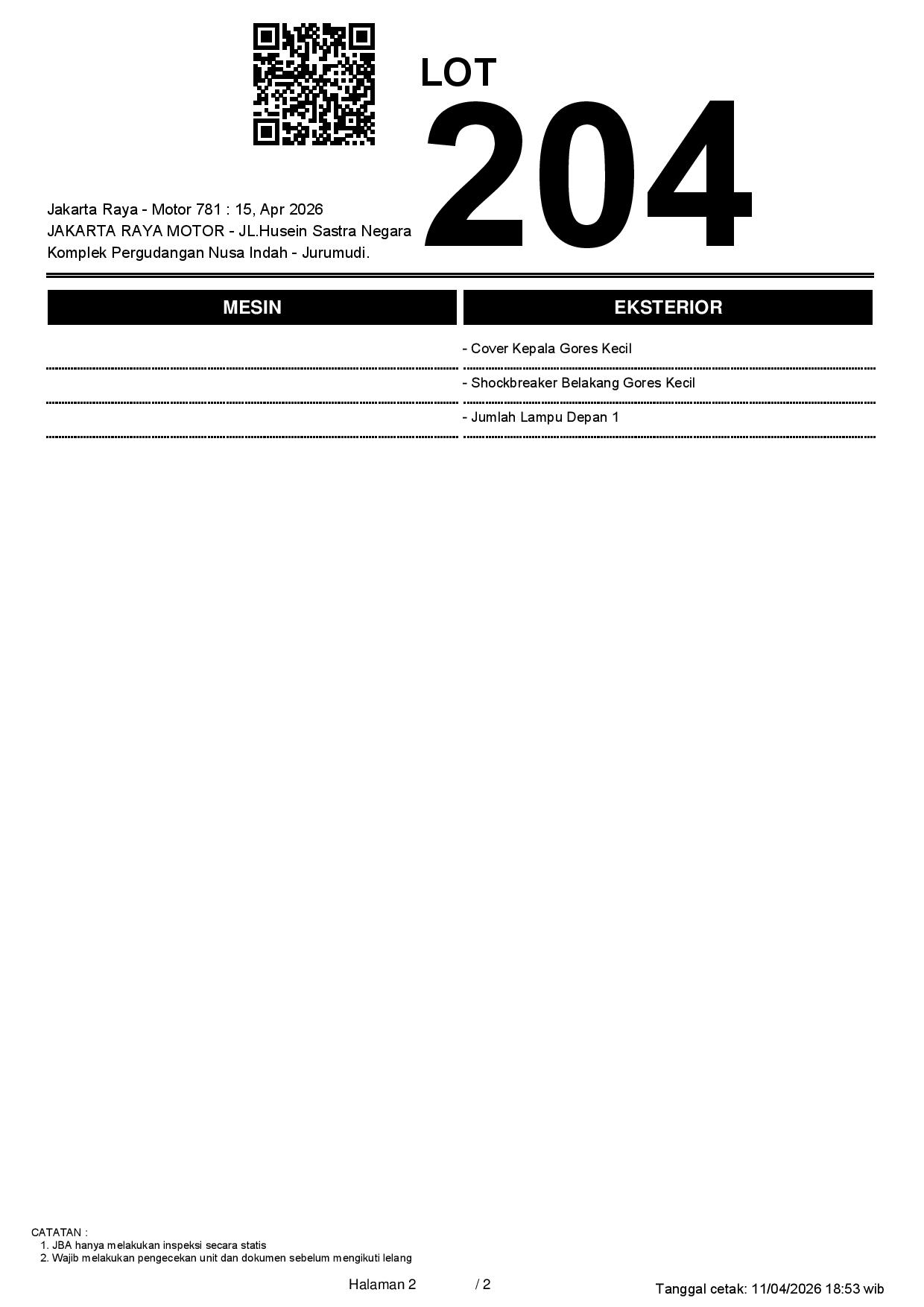 2. Peserta lelang wajib cek unit & dokumen