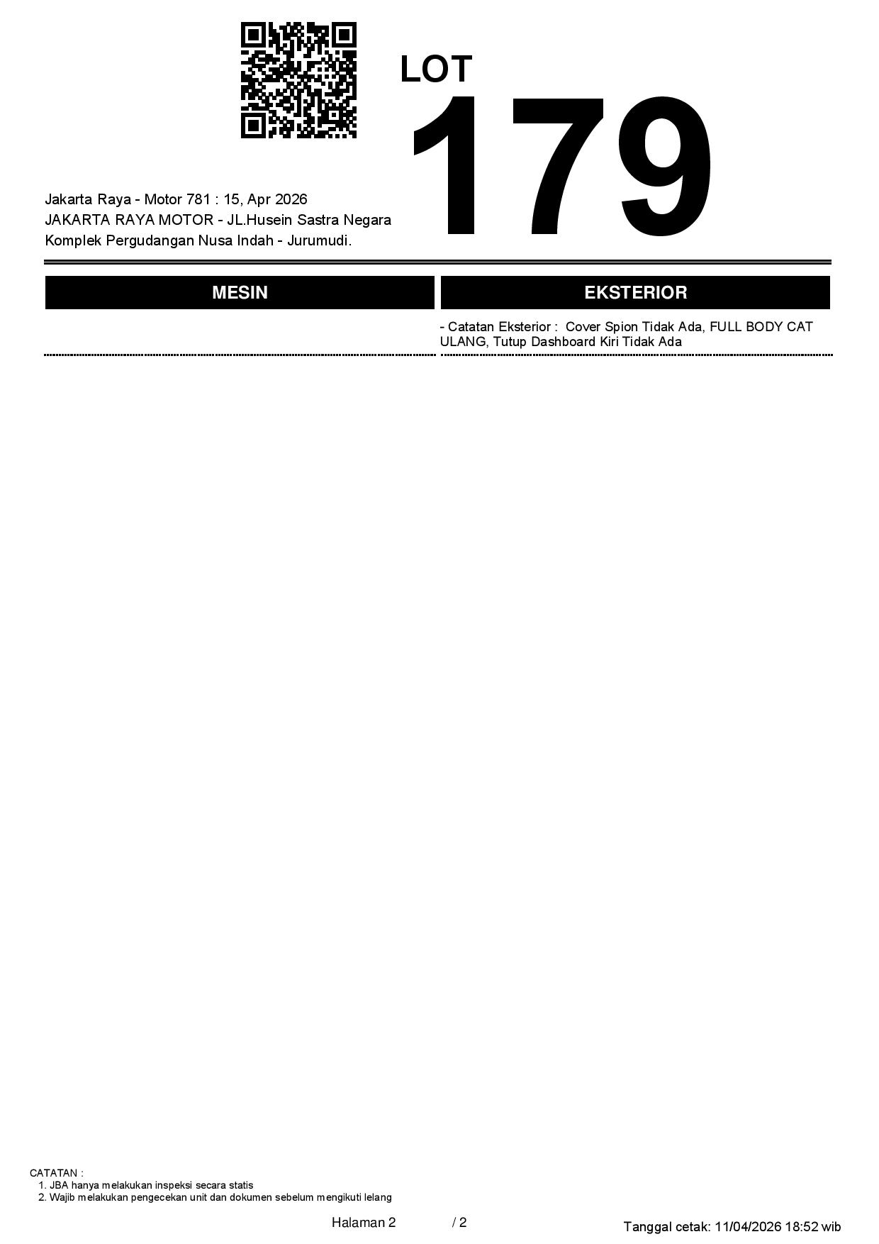 2. Peserta lelang wajib cek unit & dokumen