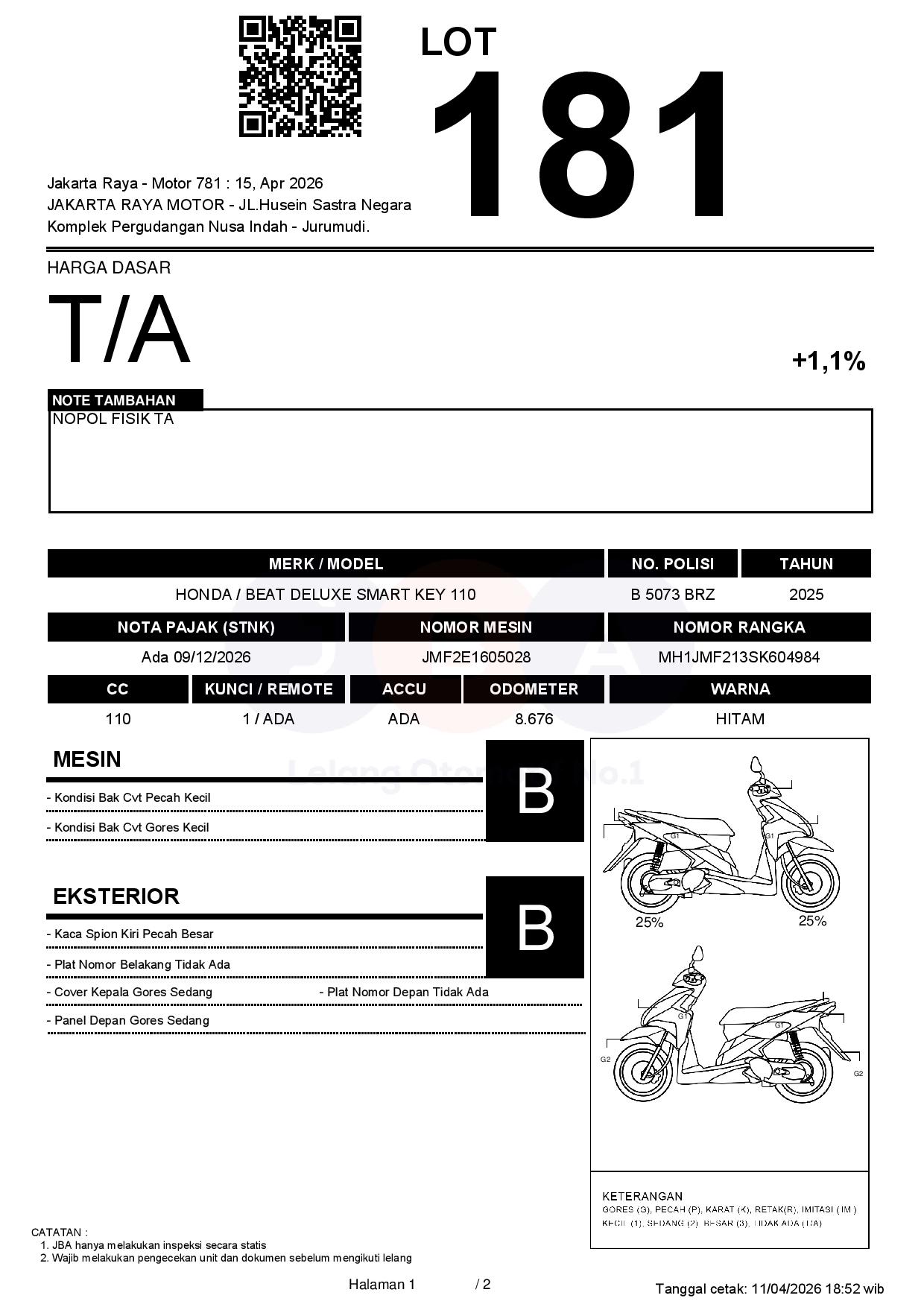 Tanggal Lelang: 15/04/2026 13:00 | WIB