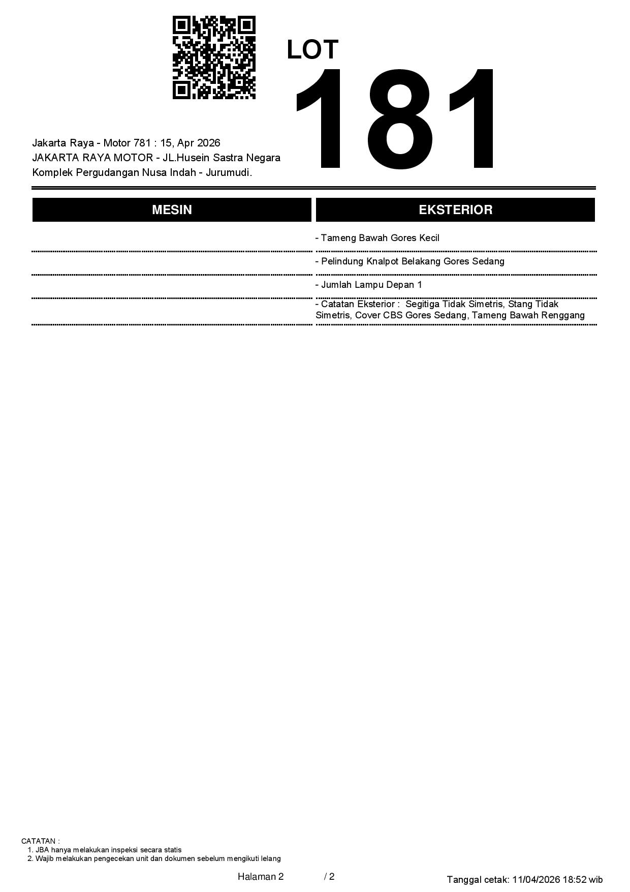 2. Peserta lelang wajib cek unit & dokumen