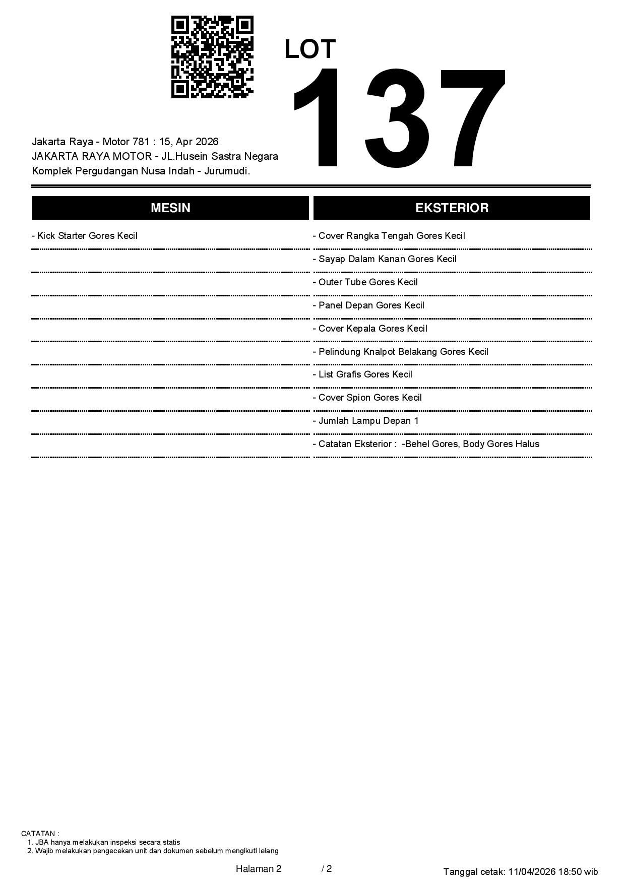 2. Peserta lelang wajib cek unit & dokumen
