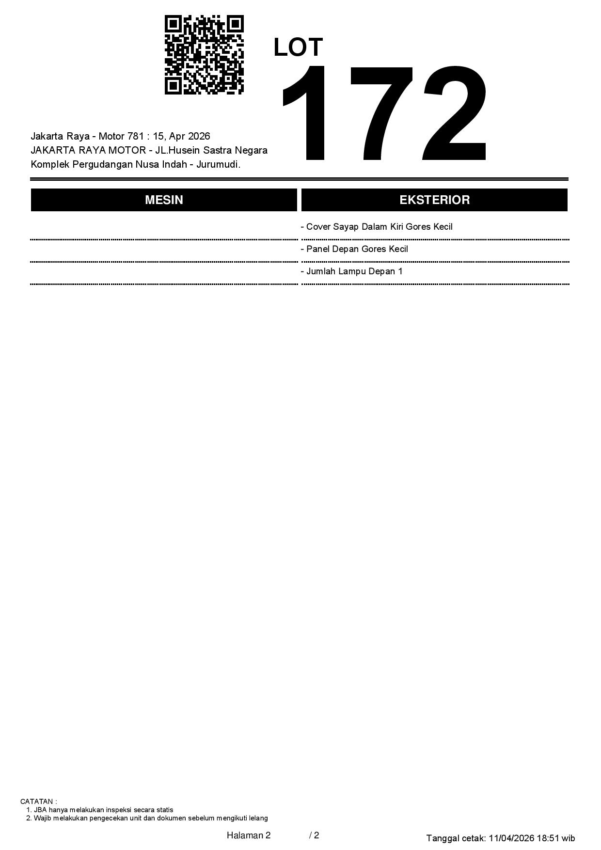 2. Peserta lelang wajib cek unit & dokumen