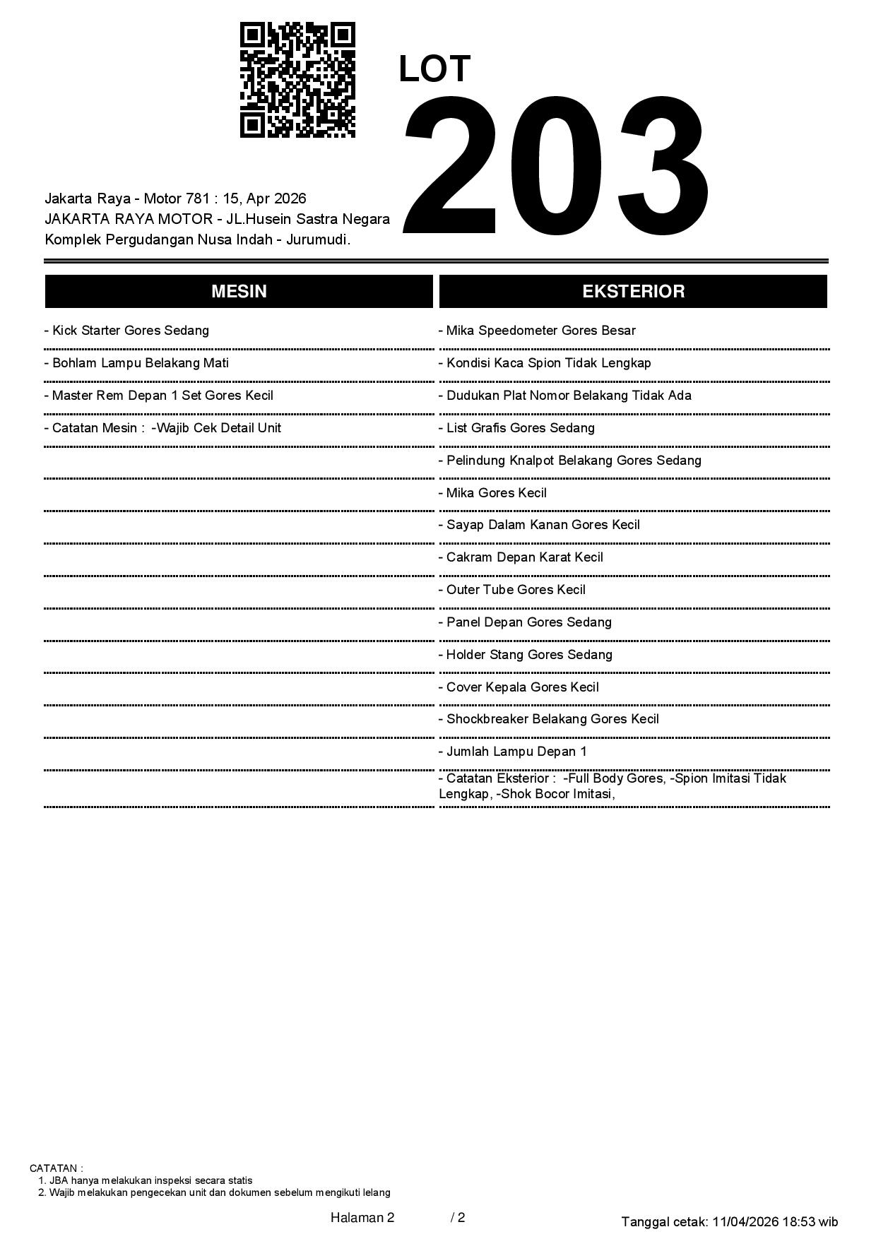 2. Peserta lelang wajib cek unit & dokumen