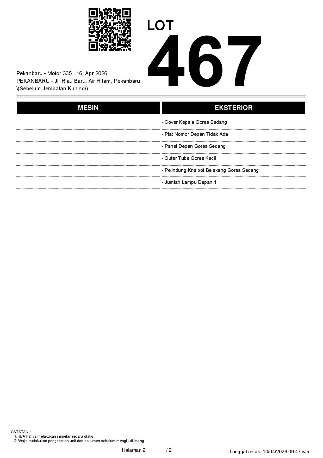 2. Peserta lelang wajib cek unit & dokumen