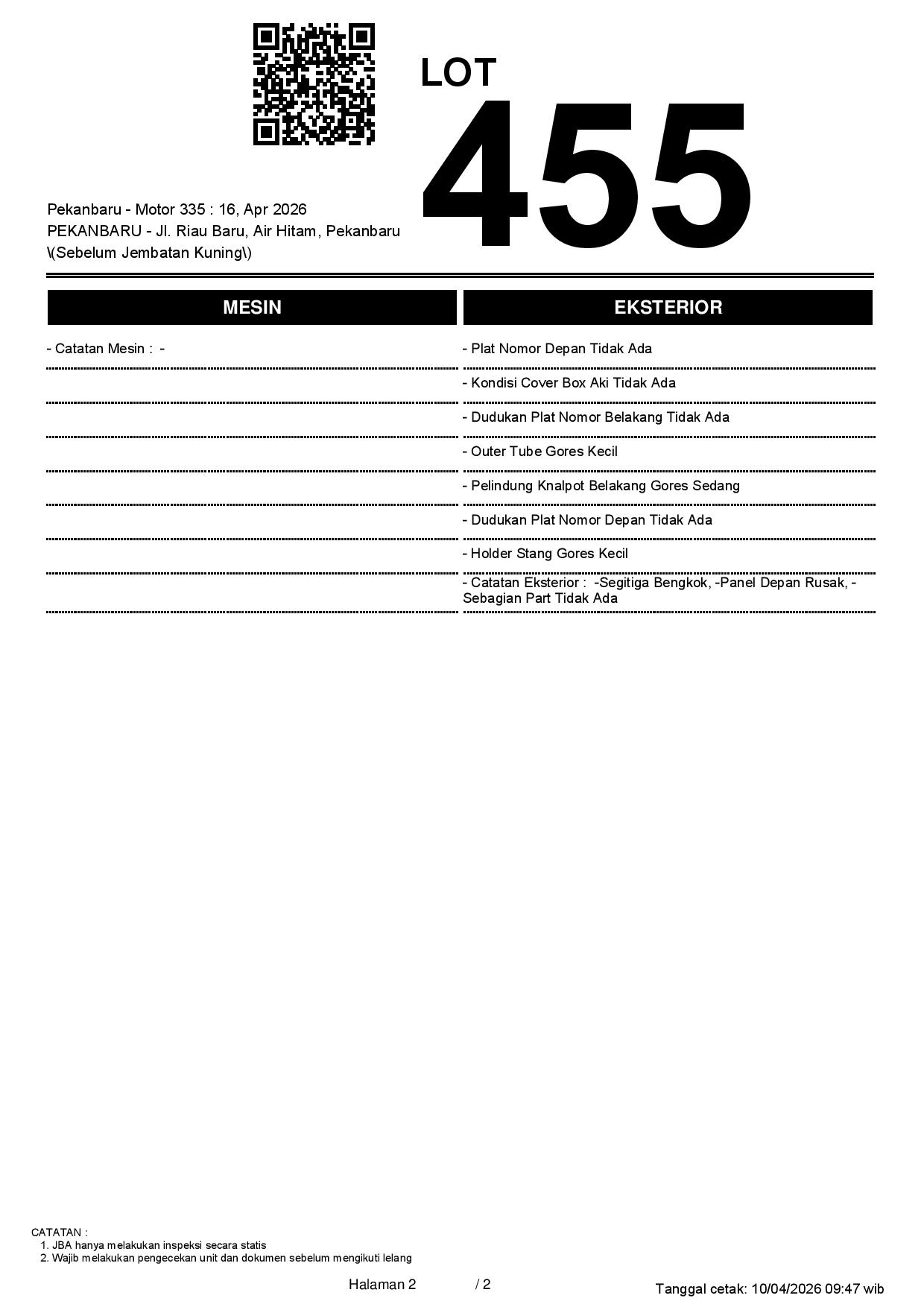 2. Peserta lelang wajib cek unit & dokumen