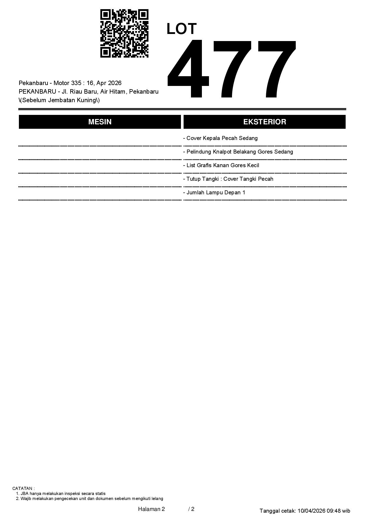 2. Peserta lelang wajib cek unit & dokumen