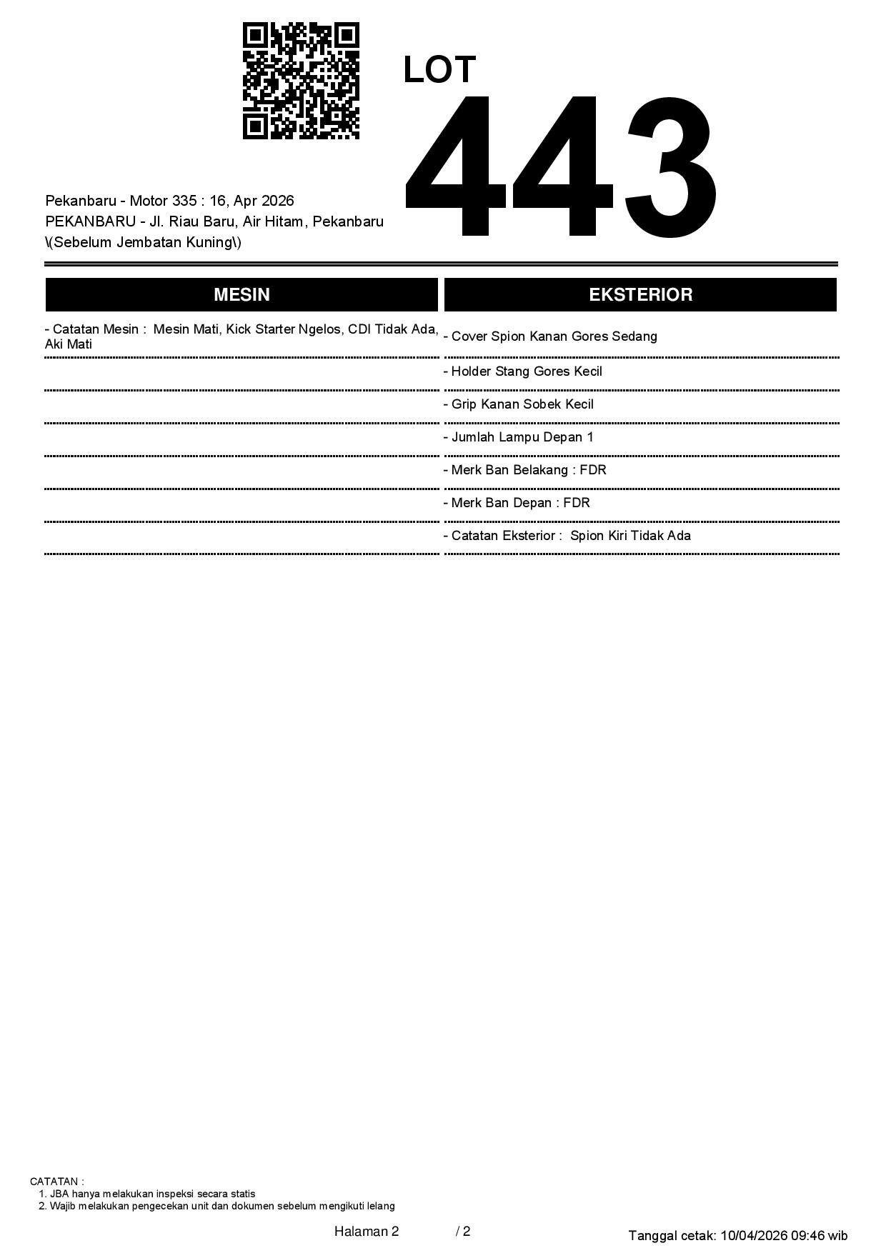 2. Peserta lelang wajib cek unit & dokumen