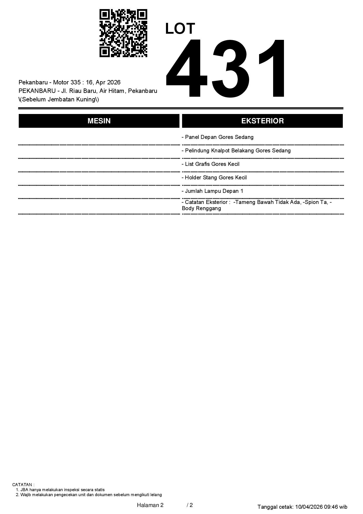2. Peserta lelang wajib cek unit & dokumen