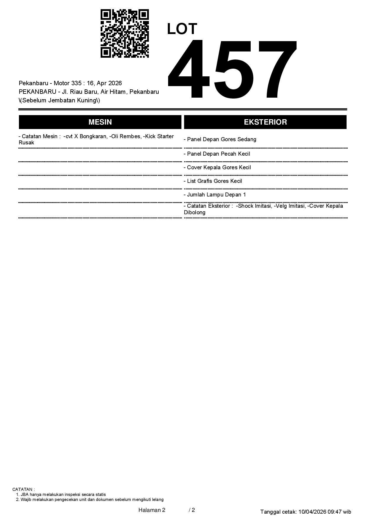 2. Peserta lelang wajib cek unit & dokumen