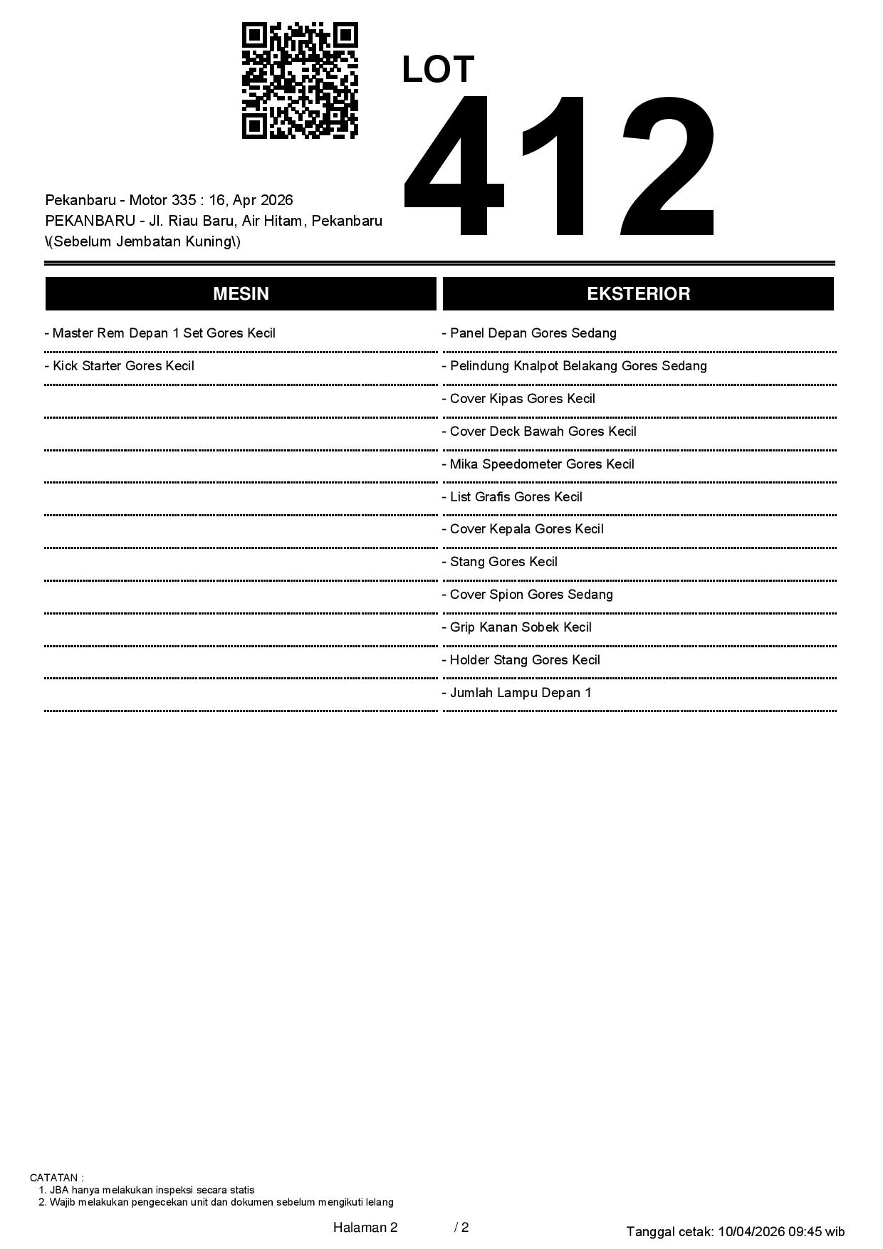 2. Peserta lelang wajib cek unit & dokumen