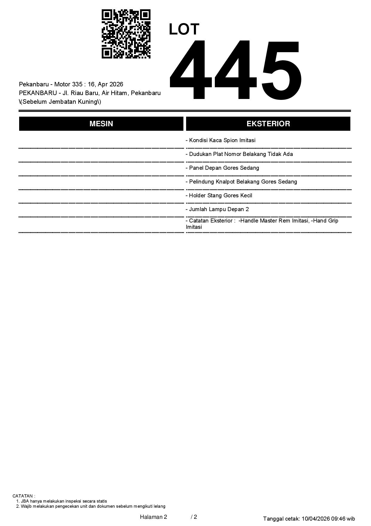 2. Peserta lelang wajib cek unit & dokumen
