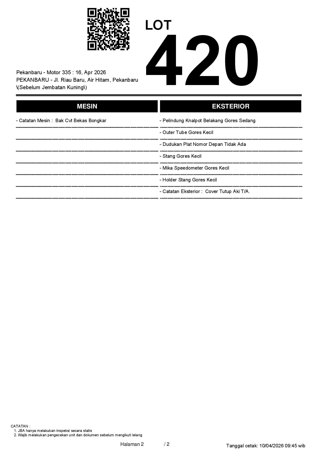 2. Peserta lelang wajib cek unit & dokumen