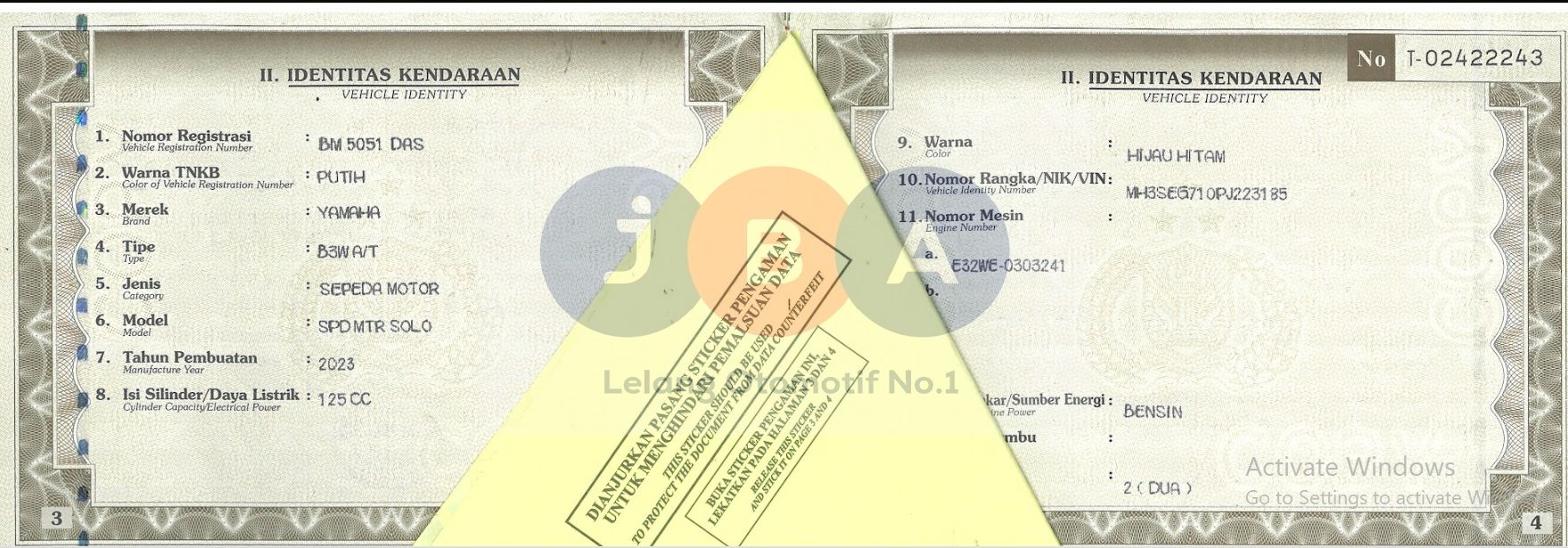 DUPLIAT STNK//WARNA UNIT DI DOKUMEN HIJAU HITAM