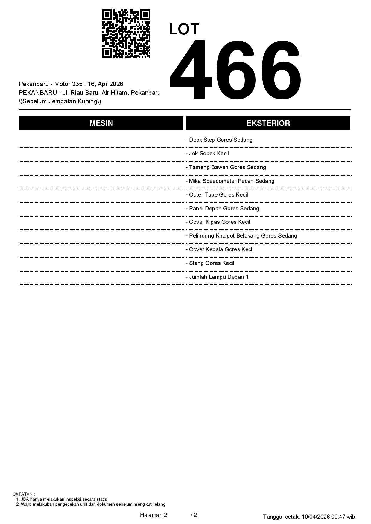 2. Peserta lelang wajib cek unit & dokumen